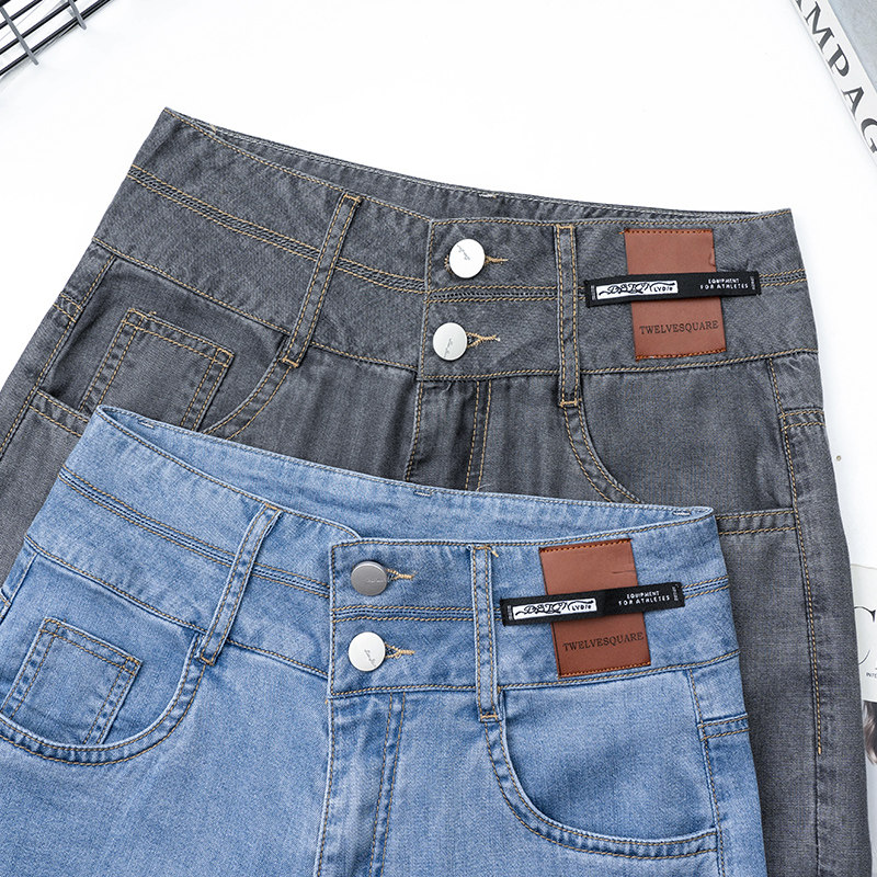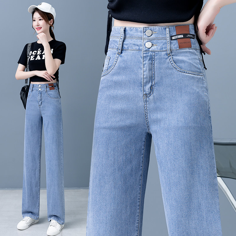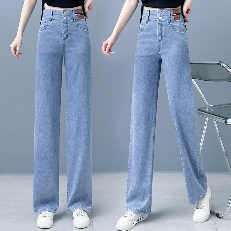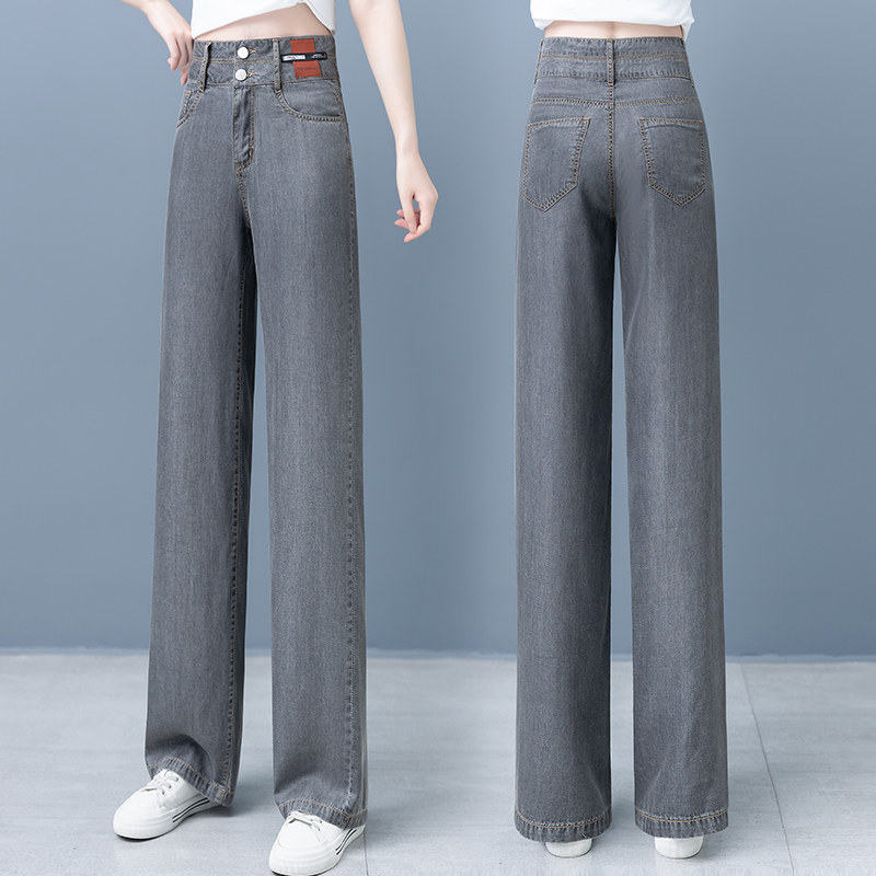 Тонкие джинсы, шелковые штаны, свободный прямой крой, высокая талия