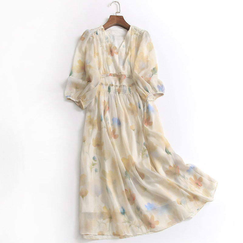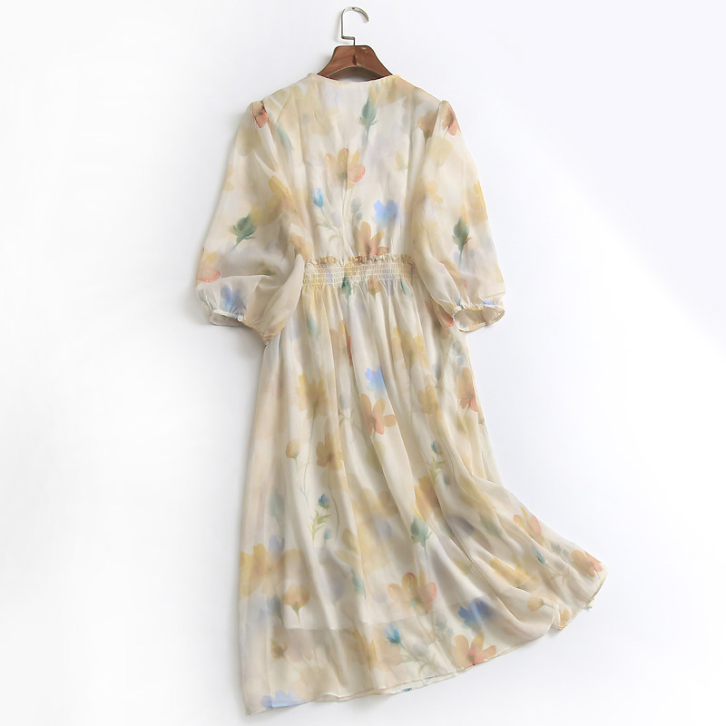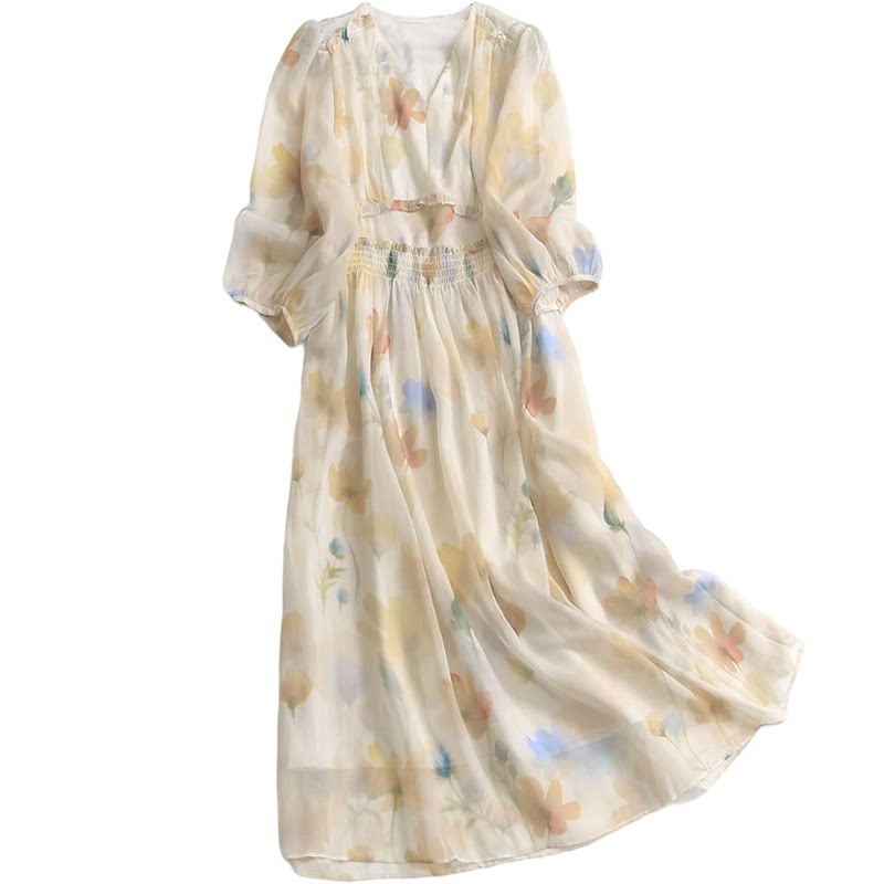 Приталенная шифоновая летняя юбка, платье, эластичная талия, V-образный вырез