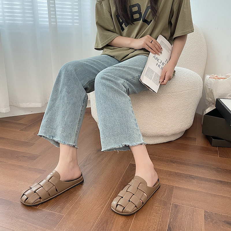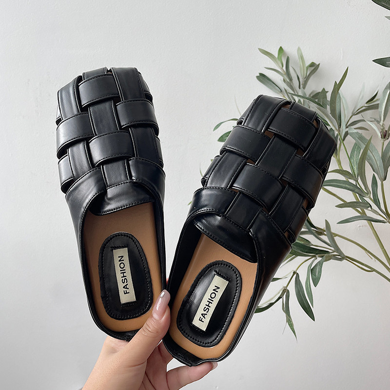 Тапочки, летняя небольшая дизайнерская плетеная универсальная обувь, мягкая подошва, 2024 года, тренд сезона