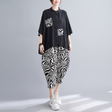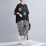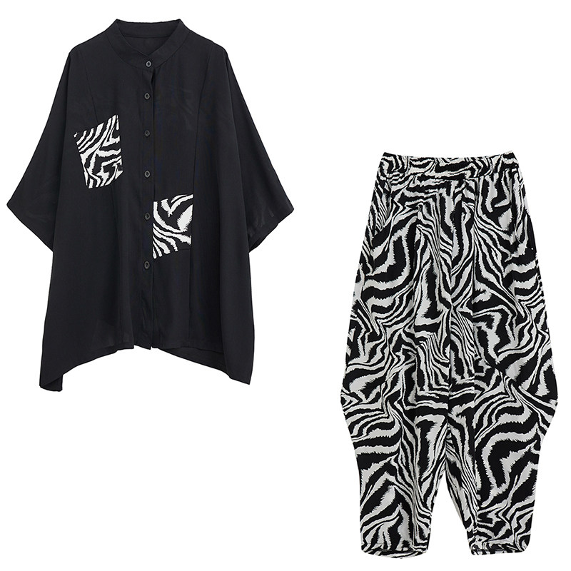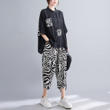 Модный тонкий кардиган с круглым воротником, зебра, комплект, большой размер, оверсайз