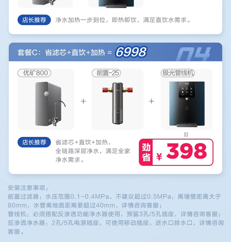 Midea Water Purifier Домохозяйство прямой напиток для водопровода Водоочиститель фильтр для очистки воды в полном доме