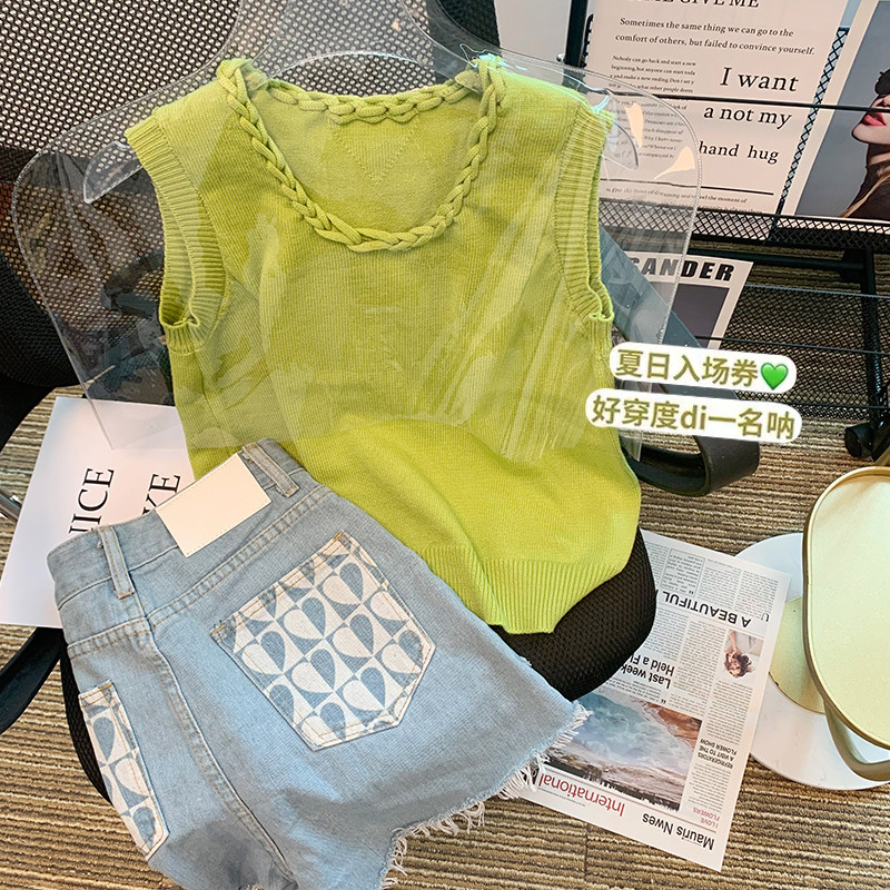 Дизайнерская зеленая трикотажная цепь, жилет, брендовая футболка без рукавов, комплект, делается под заказ, тренд сезона, в стиле Шанель
