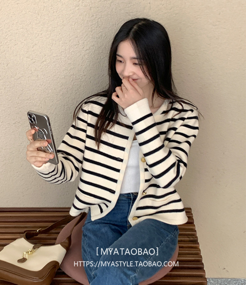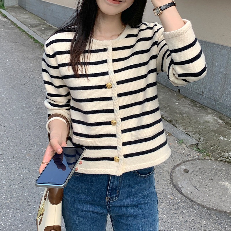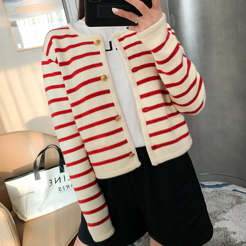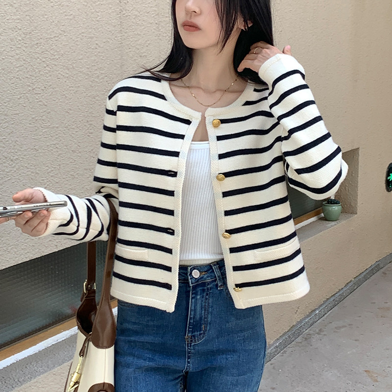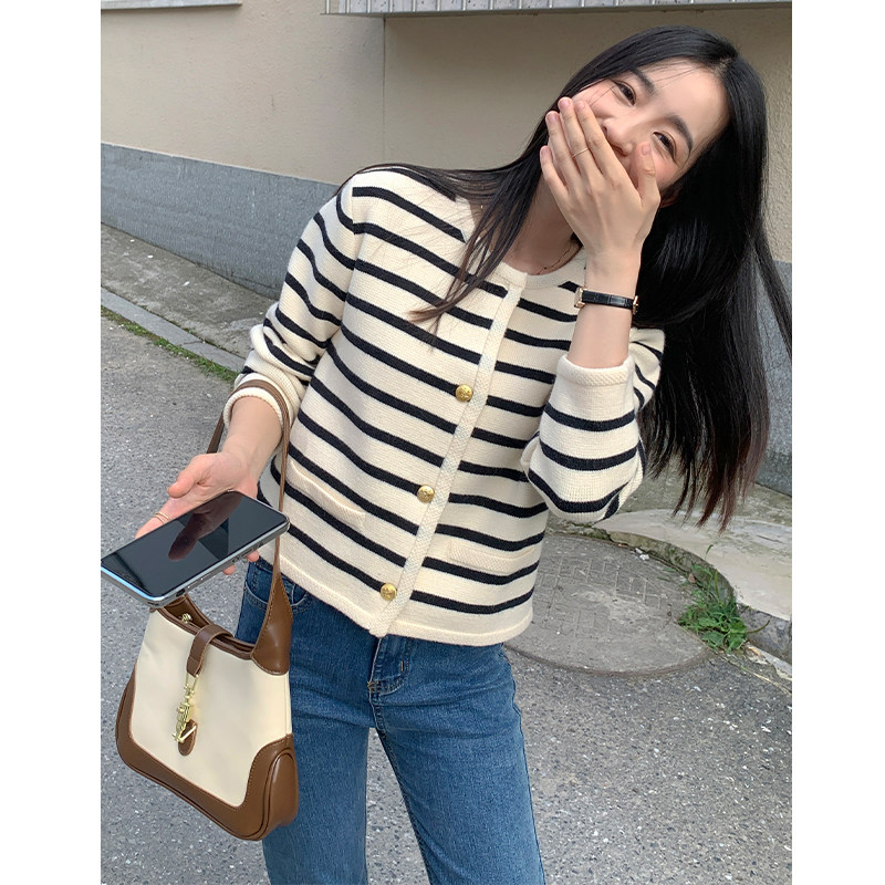 Трикотажный кардиган, осенняя куртка, осенний комплект, шерстяной свитер с круглым воротником, в стиле Шанель