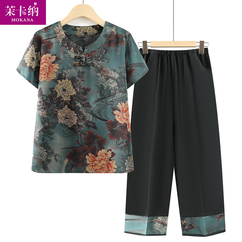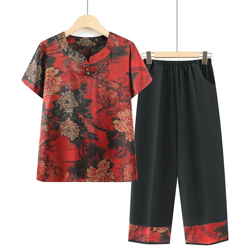 Летняя одежда для матери, комплект для пожилых людей, в западном стиле, короткий рукав, для среднего возраста