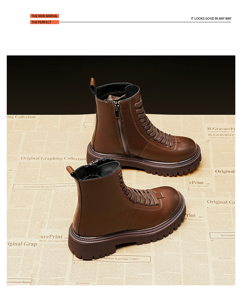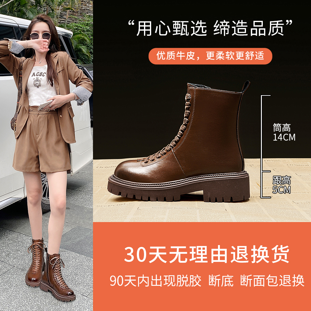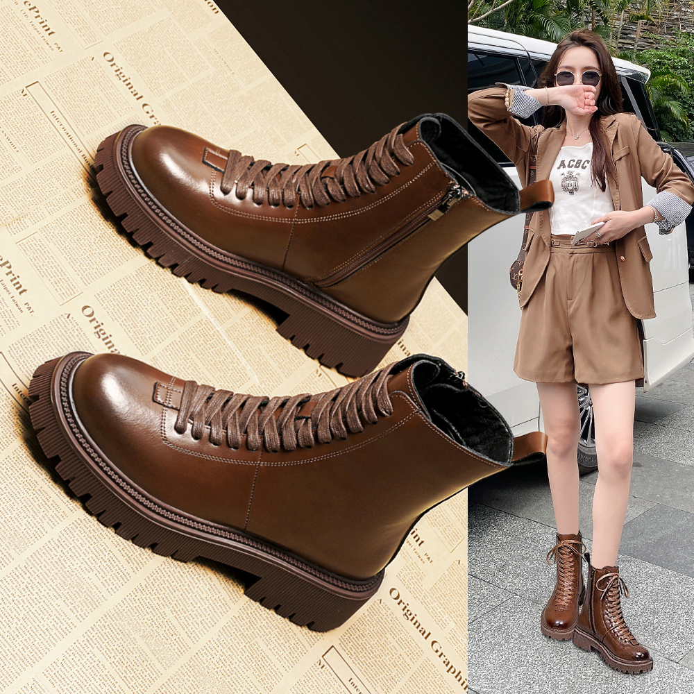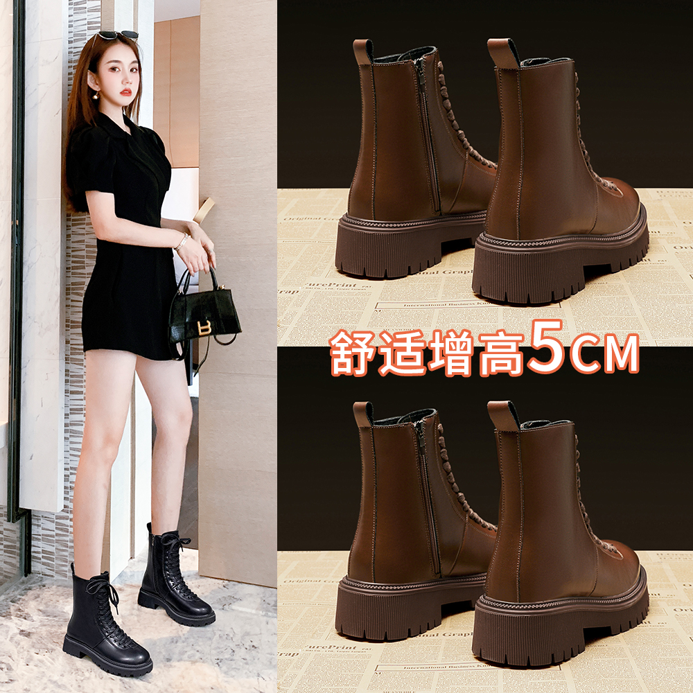 Martens, демисезонные короткие сапоги на платформе, универсальные флисовые ботинки, по фигуре, подходит для подростков, из натуральной кожи