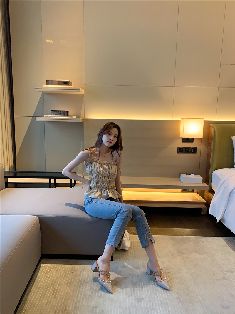 Тапочки, летние туфли на высоком каблуке, изысканный стиль, 2023