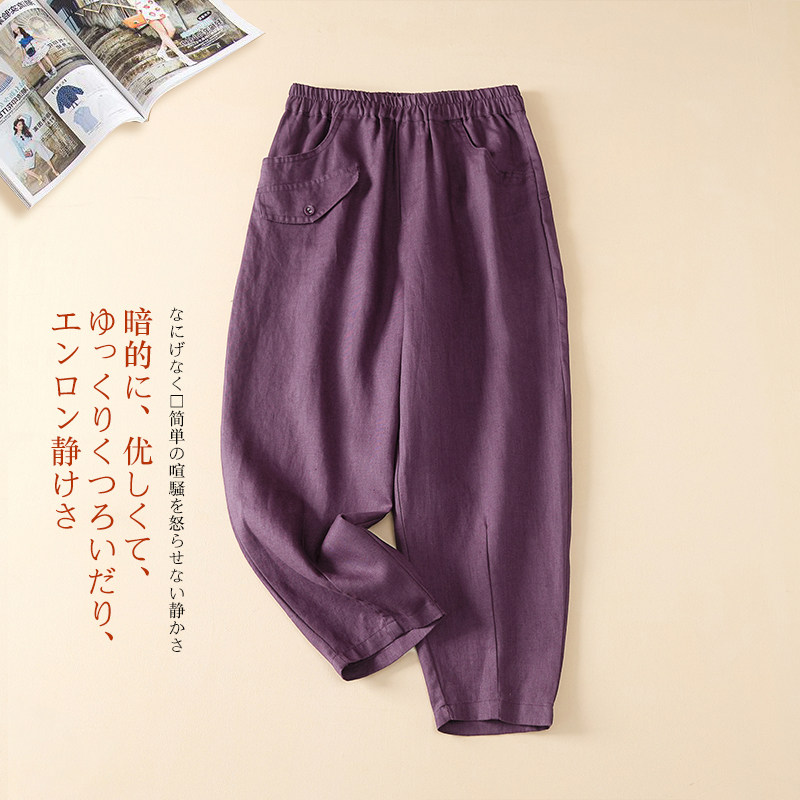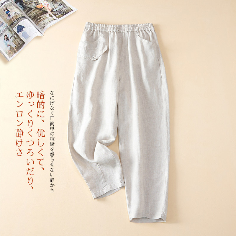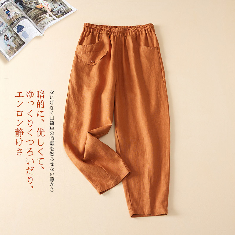 Утечка прозрачного склада ~ столовая снятие средств с большим именным режущим лейбл женский японский льняные брюки свободные покрово