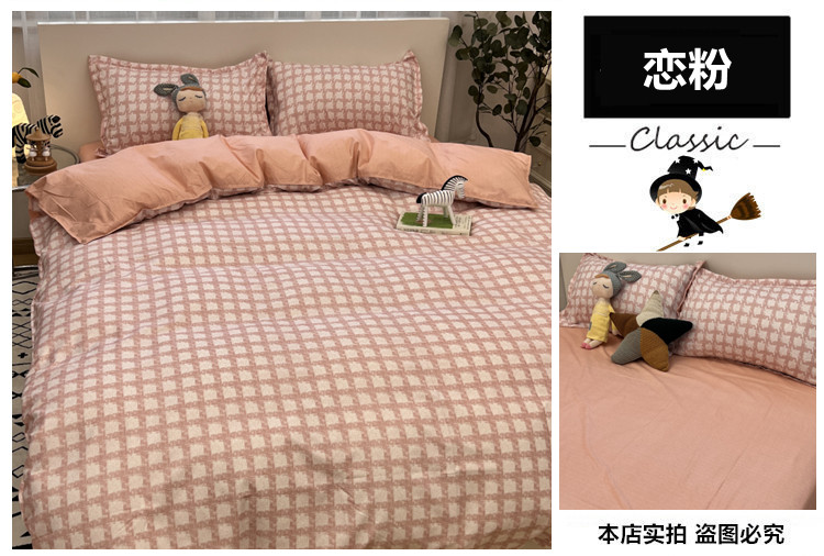 Розовая простыня, пододеяльник, комплект для школьников и студентов, 4 предмета, 1.5м, популярно в интернете, 3 предмета