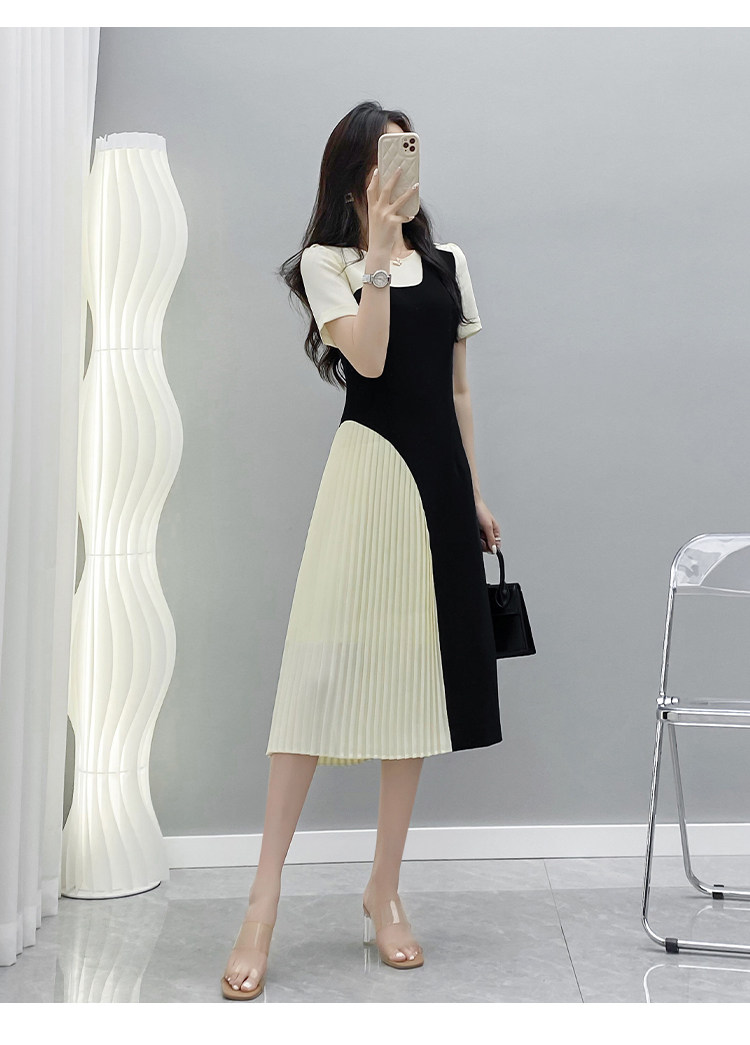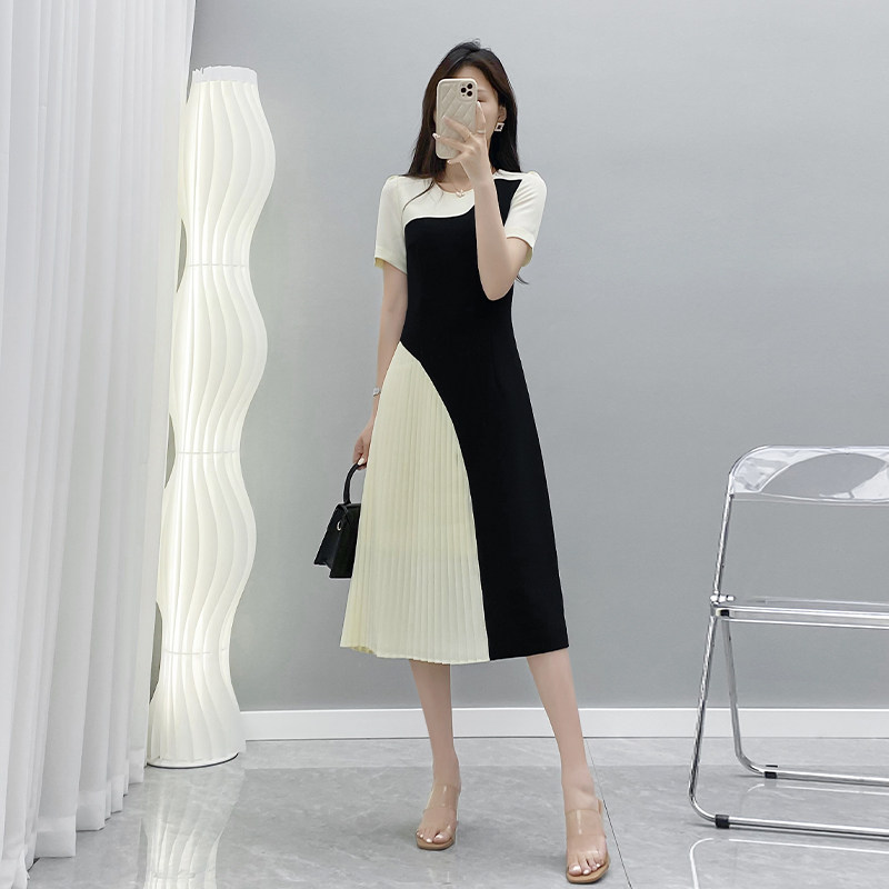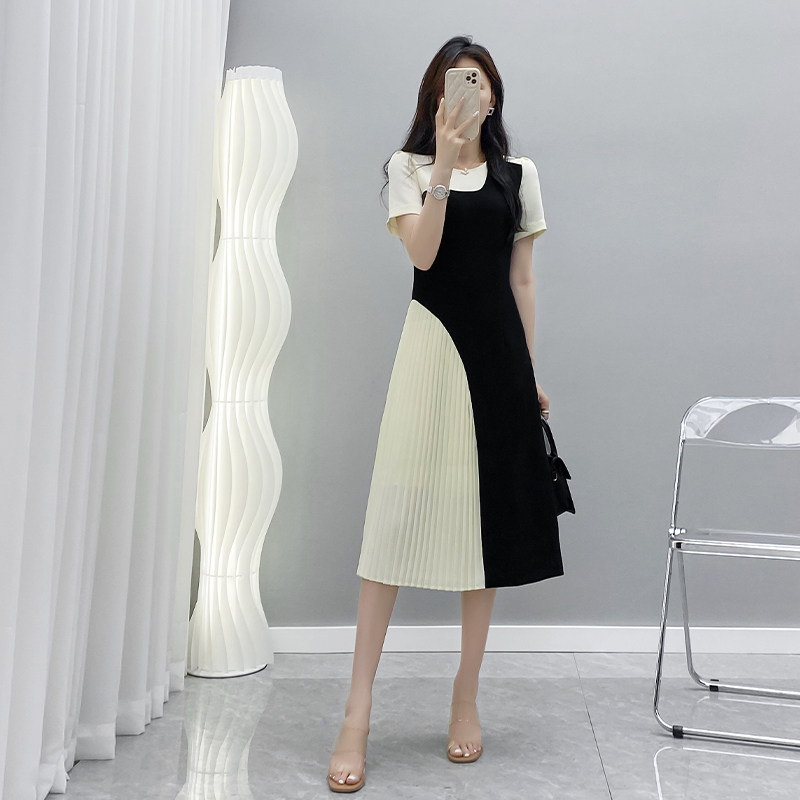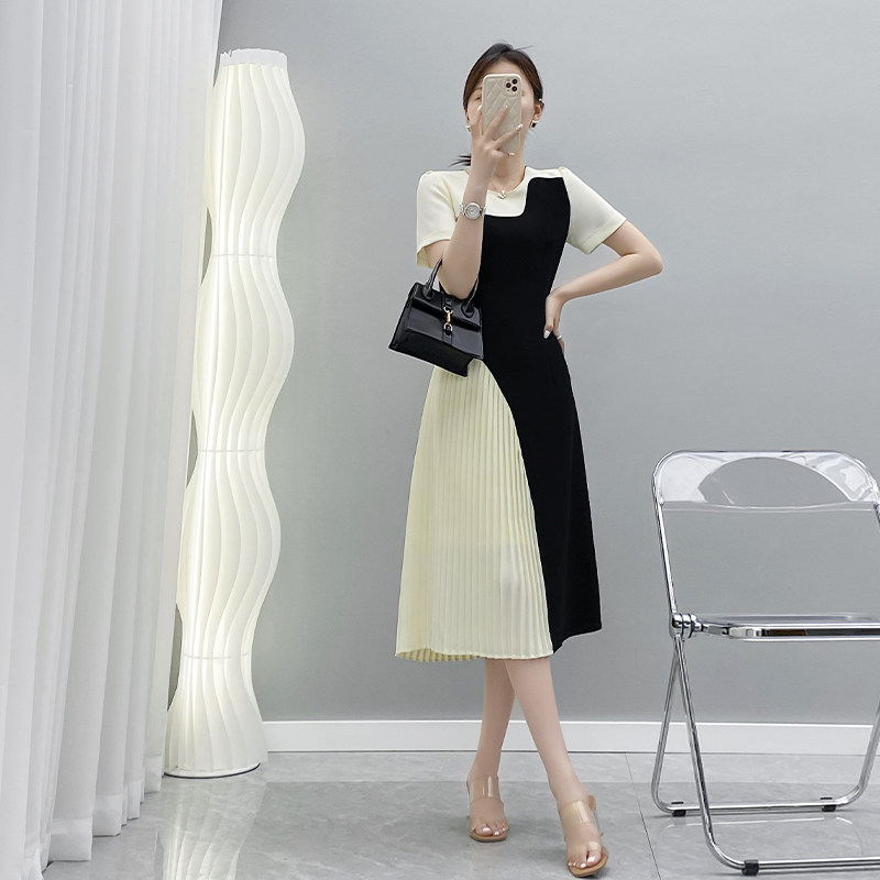 Летнее длинное платье, короткий рукав, средней длины, французский стиль, изысканный стиль