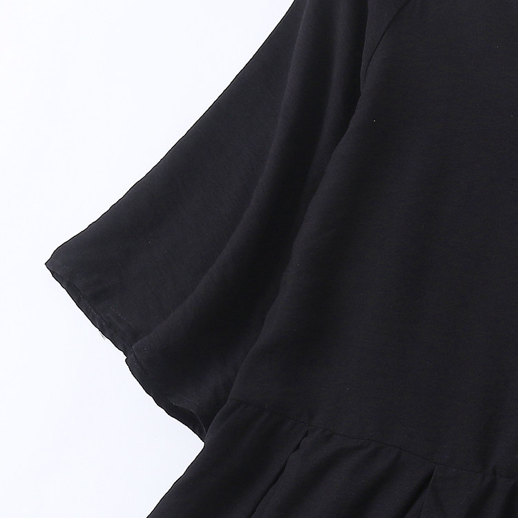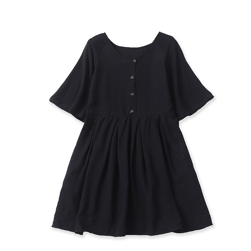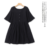 (Трансграничная торговля), летнее платье с круглым воротником, длинная юбка, из хлопка и льна, облегающий крой, средней длины