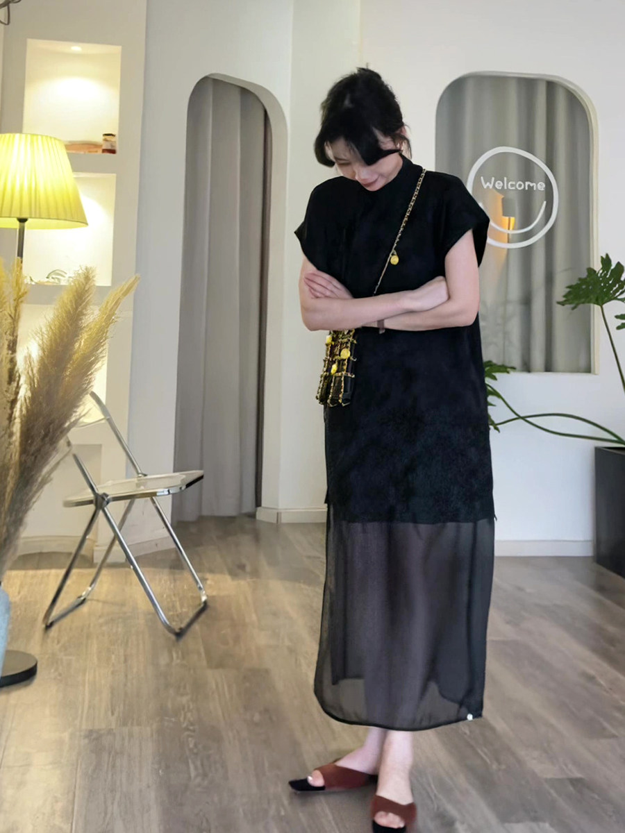 Новый китайский ретро -инвентарь с цветами и улучшенным чингсам -гофантом Qiang Demperament Standing Makeling и Dressing Children