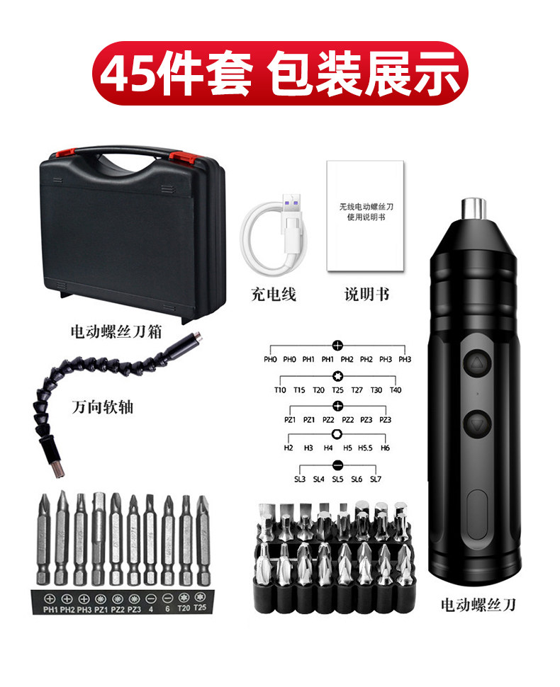- Электрическая отвертка, комплект, 45 шт