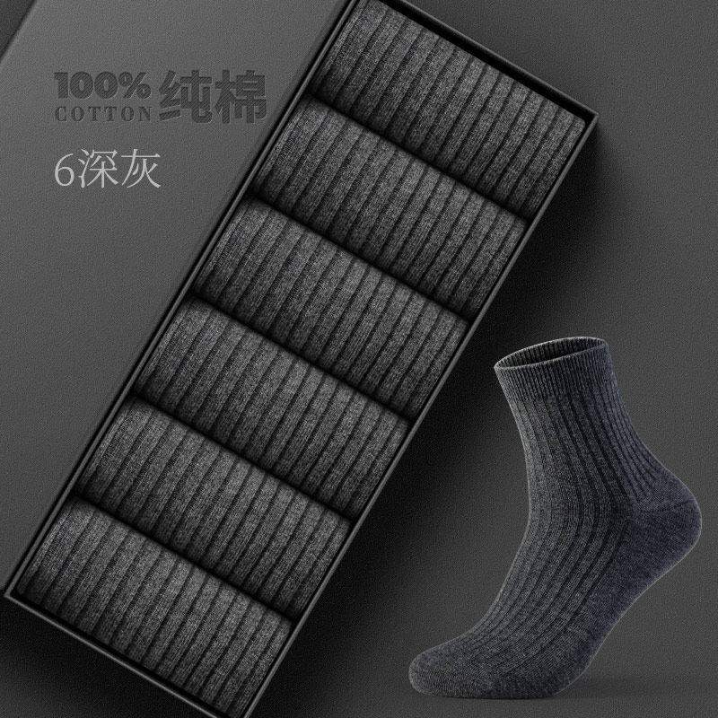 Носки мужские средние носки весна и зимнее хлопковое пот хлопок чистый хлопок Pure Black Business's Nops Fire Fire