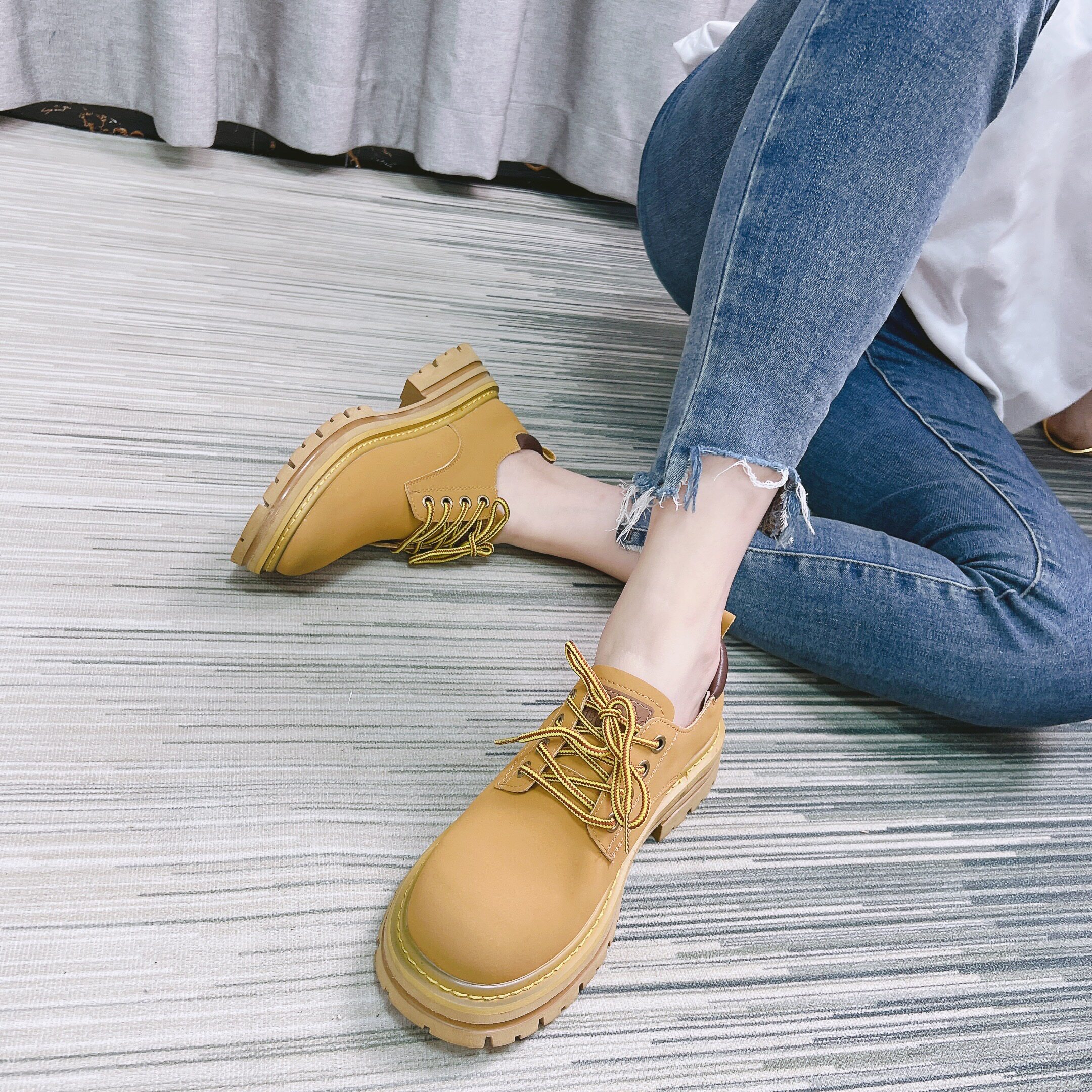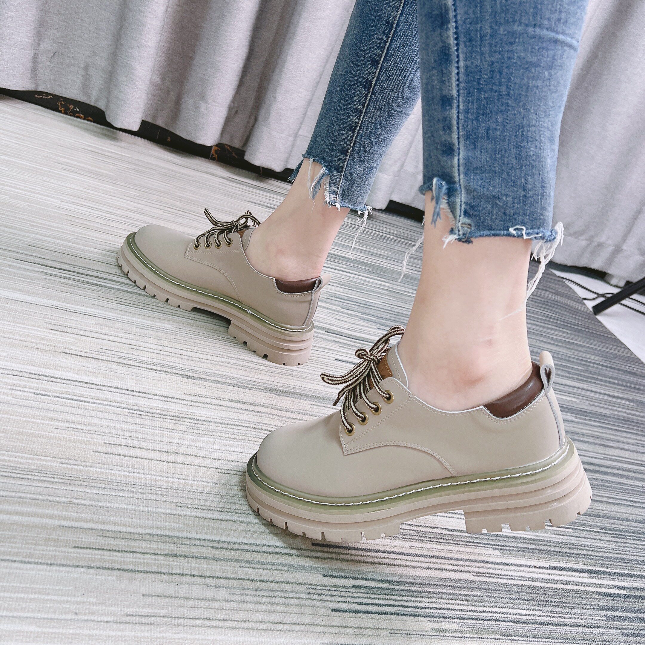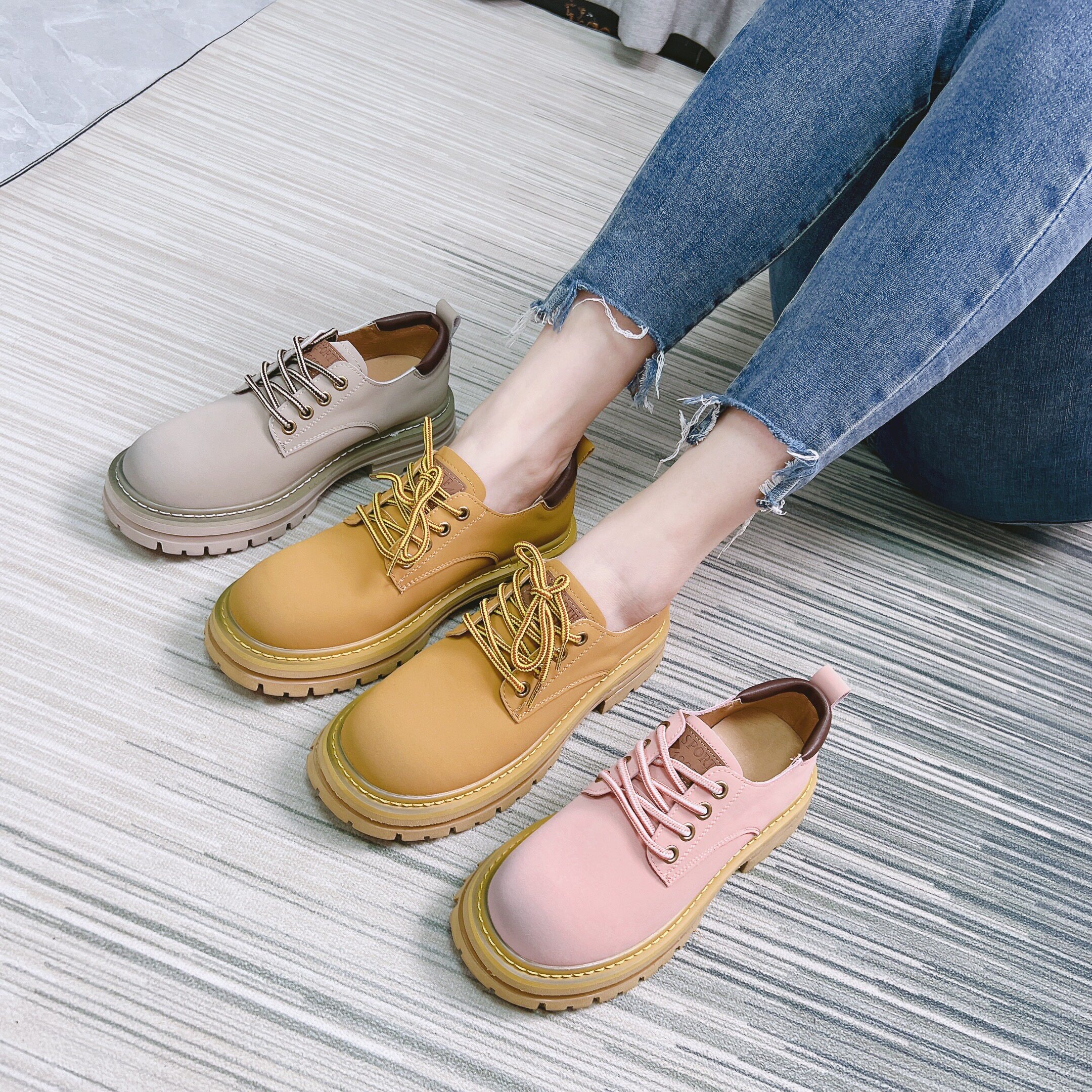 Кружева коровьей кожи окрашенные в толстую каблук.