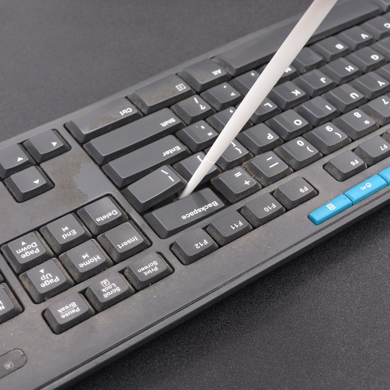 Ноутбук, клавиатура, щеточка, гаечный ключ, мобильный телефон, пластиковая щетка