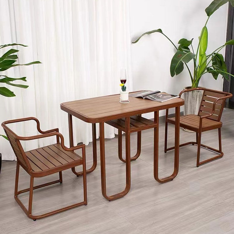 Балконные столы на открытом воздухе и стул Комбинированная алюминиевая рама пластиковый деревянный журнальный столик простые столы и стулья для двора.