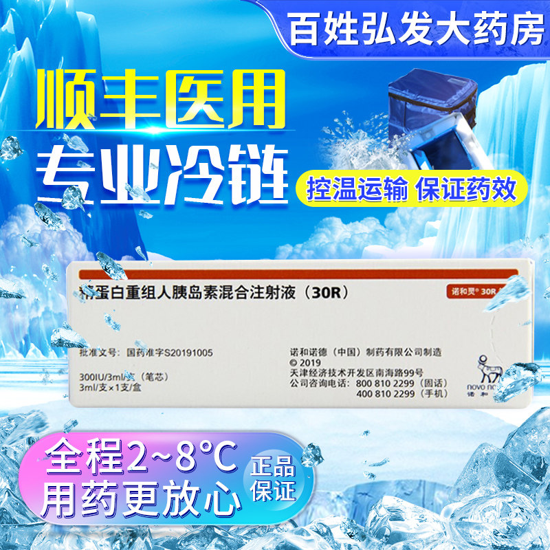 SF Cold Chain 2 ~ 8 ℃ Контроль температуры быстро транспортирует] NOVA и реструктуризация духовного белка инсулина инсулина (30R) 3 мл: 300 Международная единица (ядро перо) Контроль температуры холодной цепи с NUO и NOORD