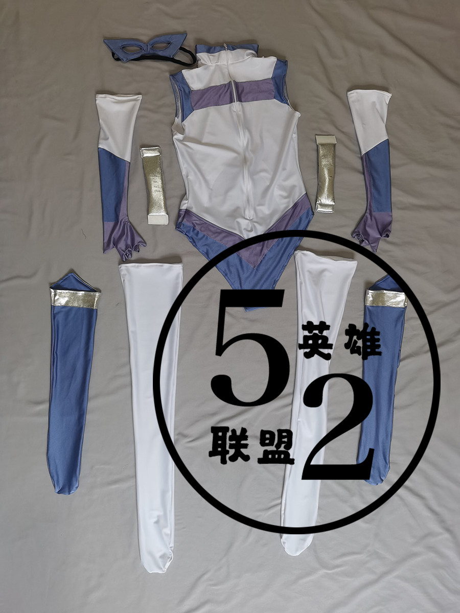 Одежда сделана из сиреневой лайкры, jinyouguang № 9 и белой лайкра, а также небольшое количество сплайсинга с серебряным клеем, покрытым клеем