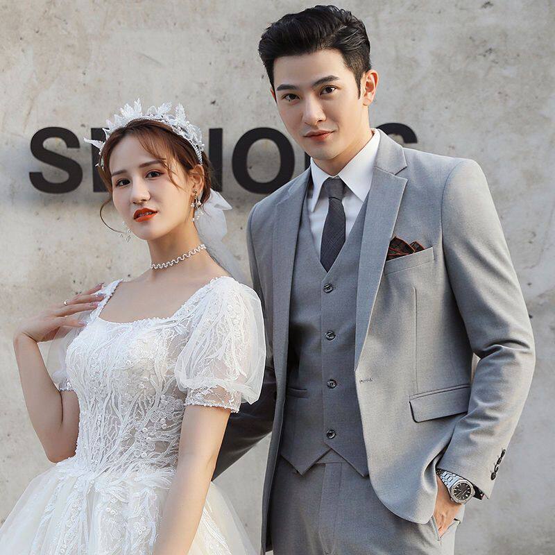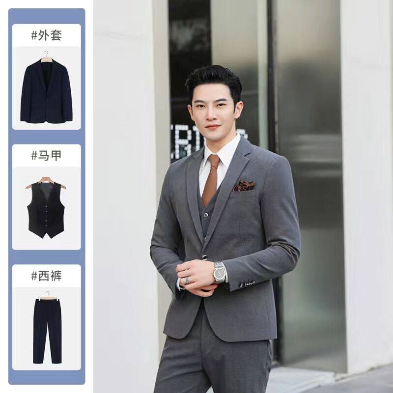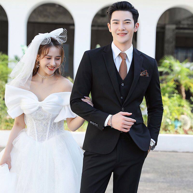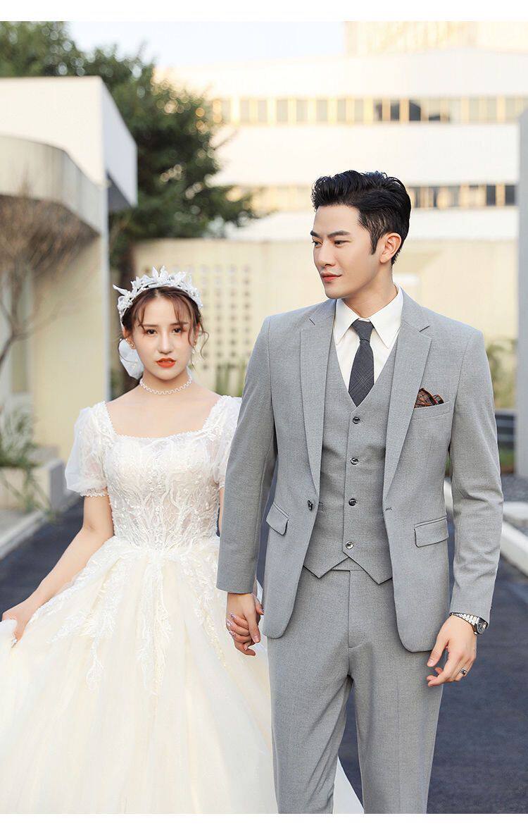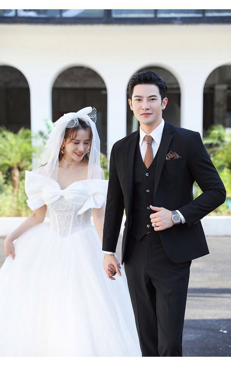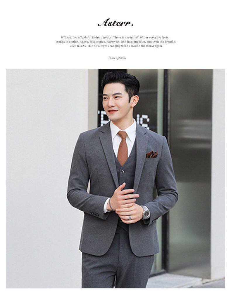 Мужской комплект, пиджак классического кроя, свадебное платье, костюм, 3 предмета, облегающий крой, в корейском стиле