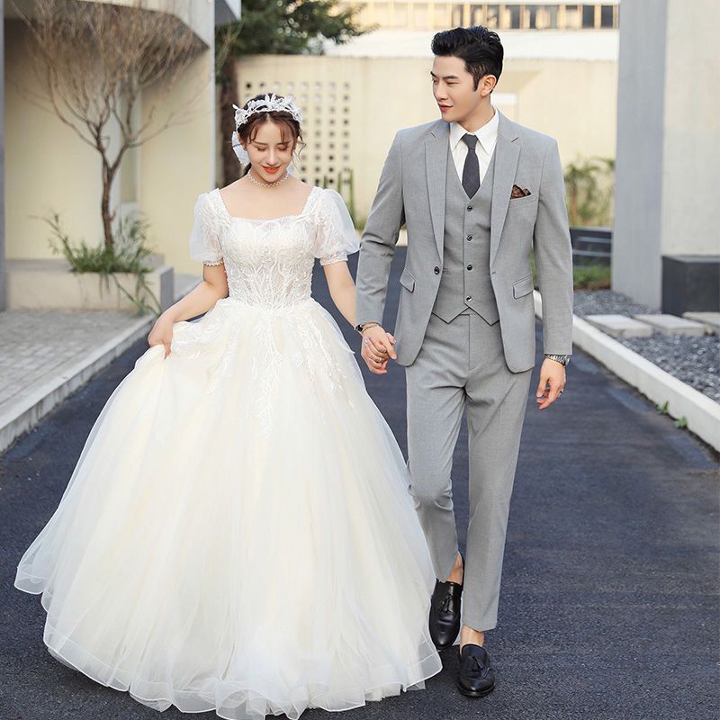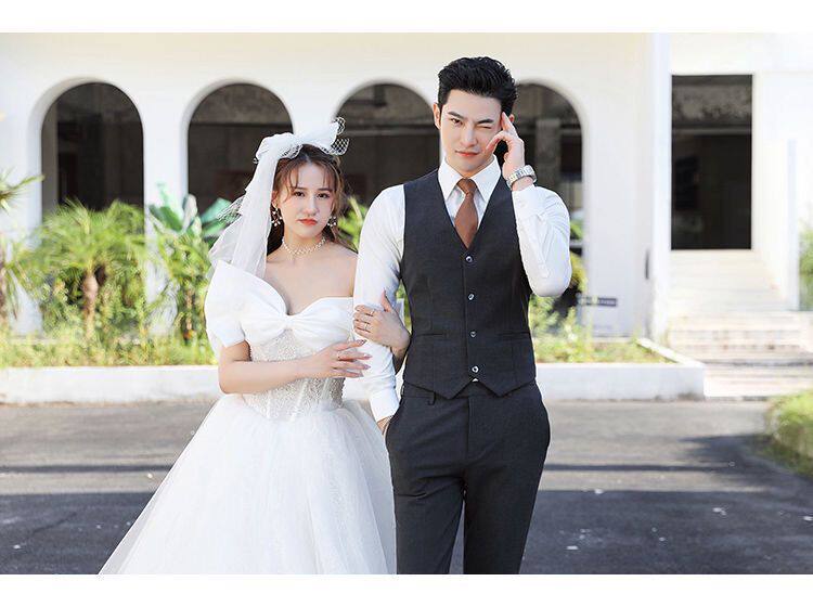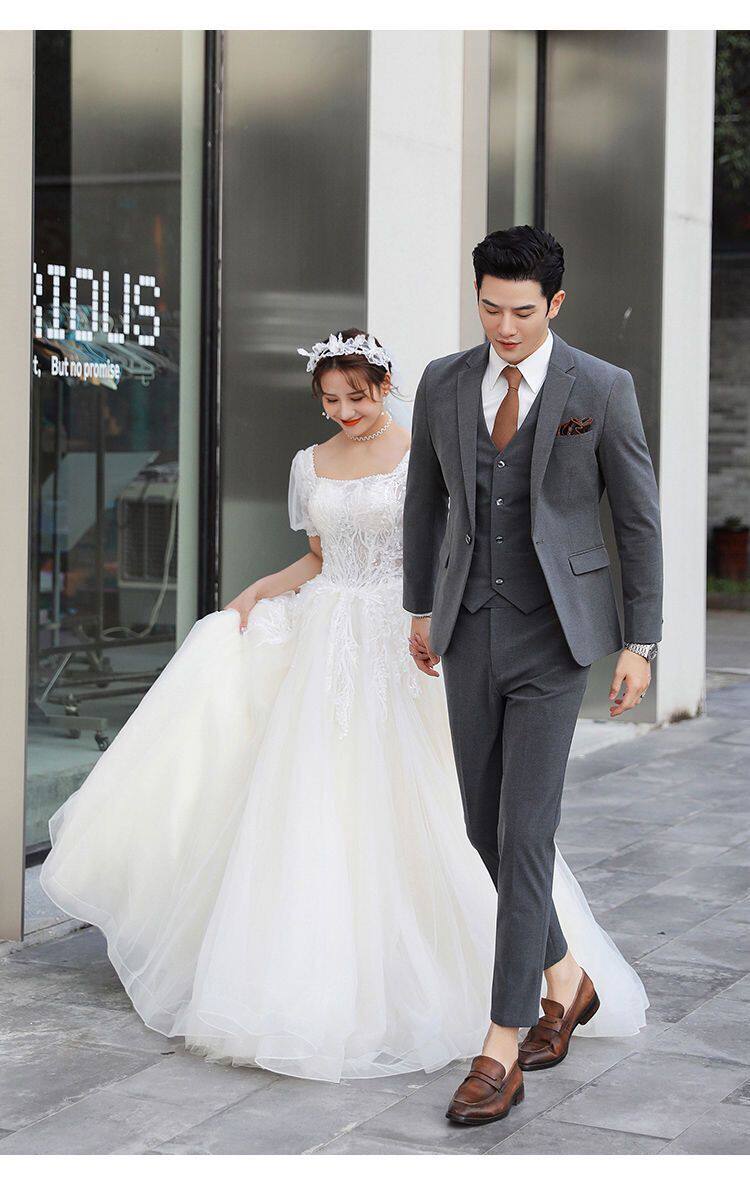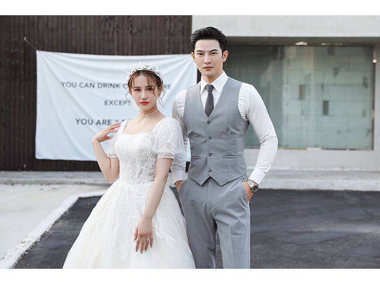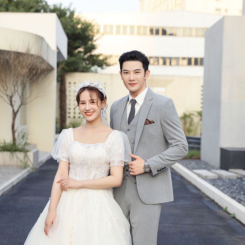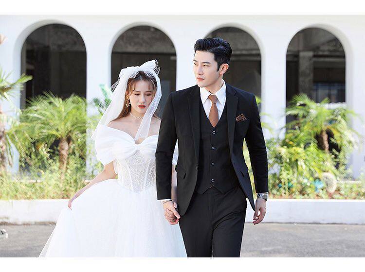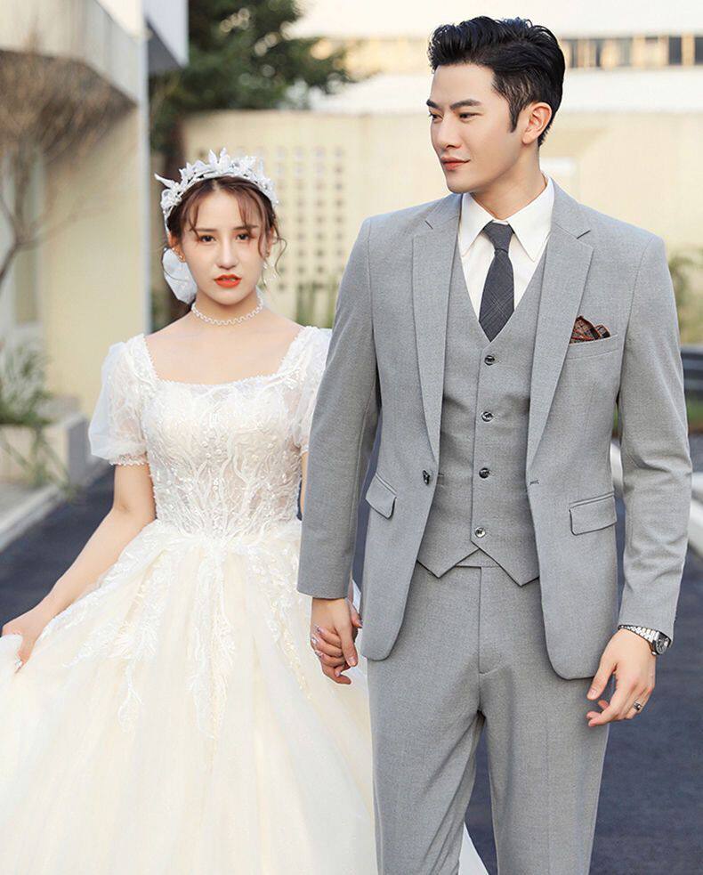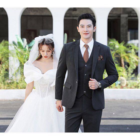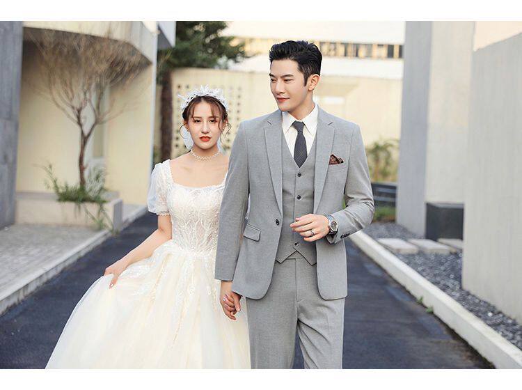 Мужской комплект, пиджак классического кроя, свадебное платье, костюм, 3 предмета, облегающий крой, в корейском стиле