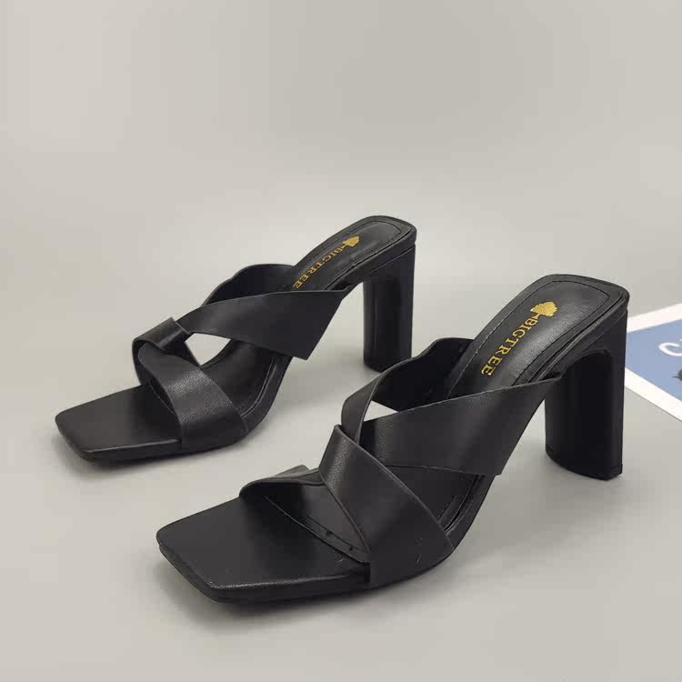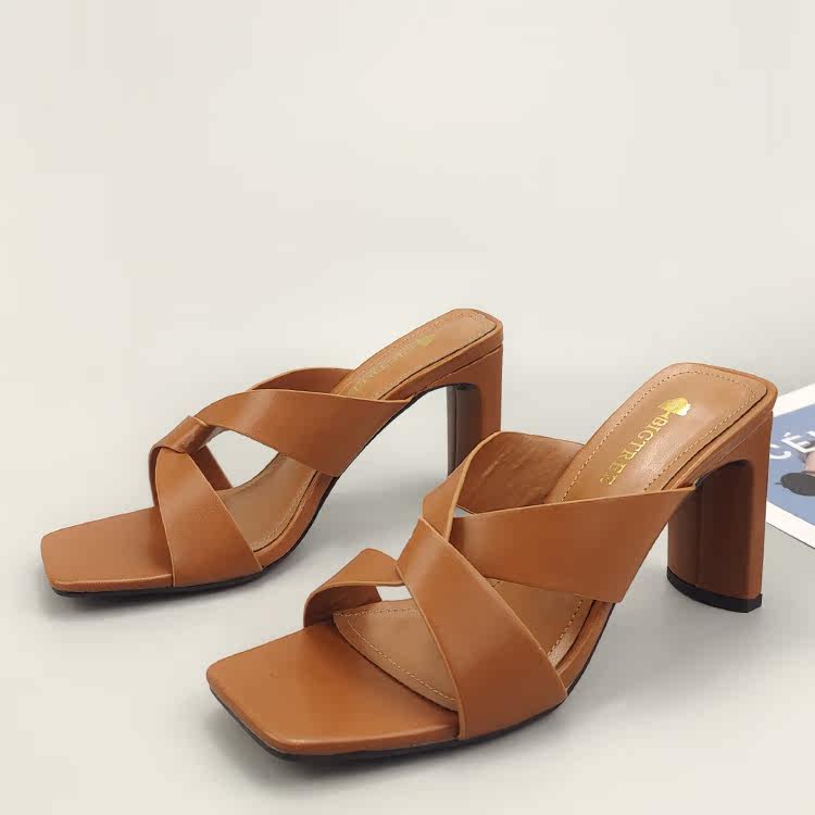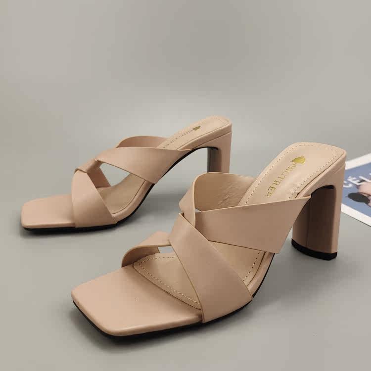 2022 летние стильные сексуальные утягивающие педикюрные модные тапочки на толстом каблуке, сандалии на высоком каблуке с квадратным носком, открытым носком и перекрестным ремешком, тапочки