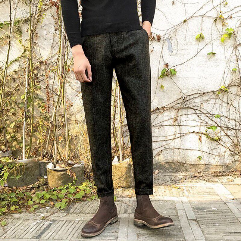 Martens, шерстяные демисезонные ретро штаны, облегающий крой, большой размер
