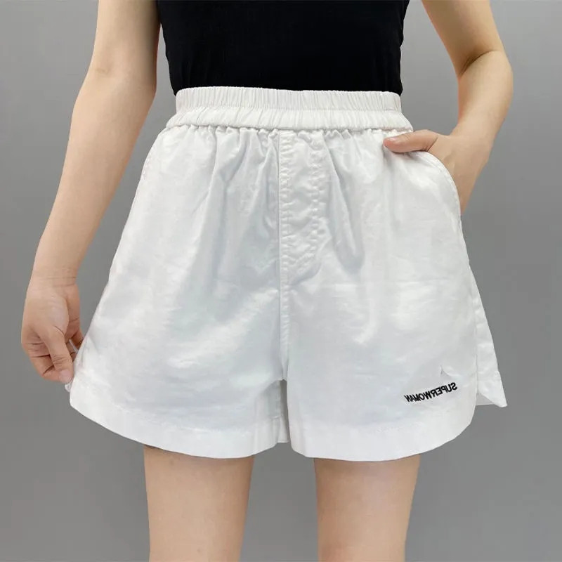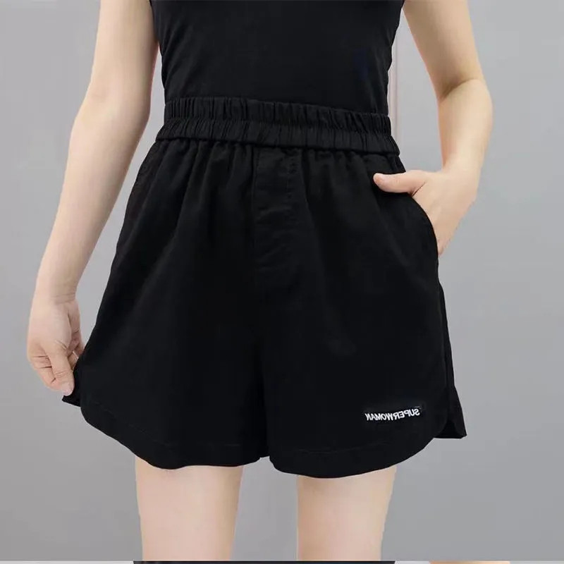 Черные цветные хлопковые шорты, штаны, высокая талия, свободный крой, коллекция 2022, А-силуэт, эластичная талия