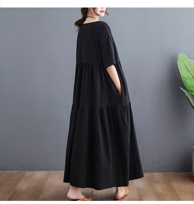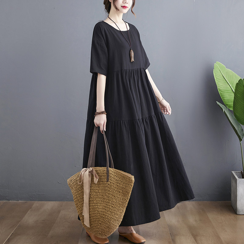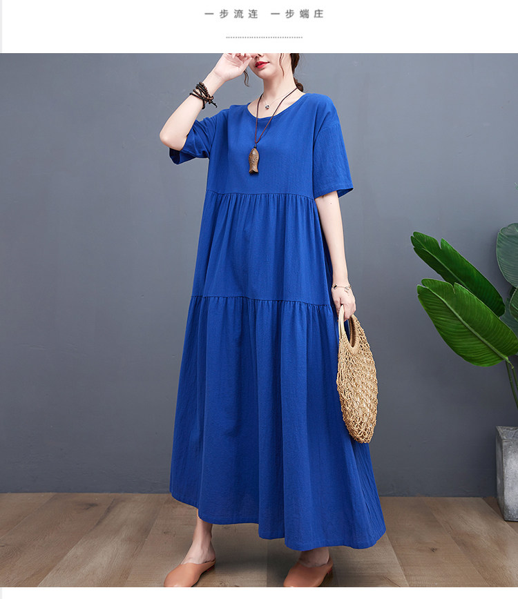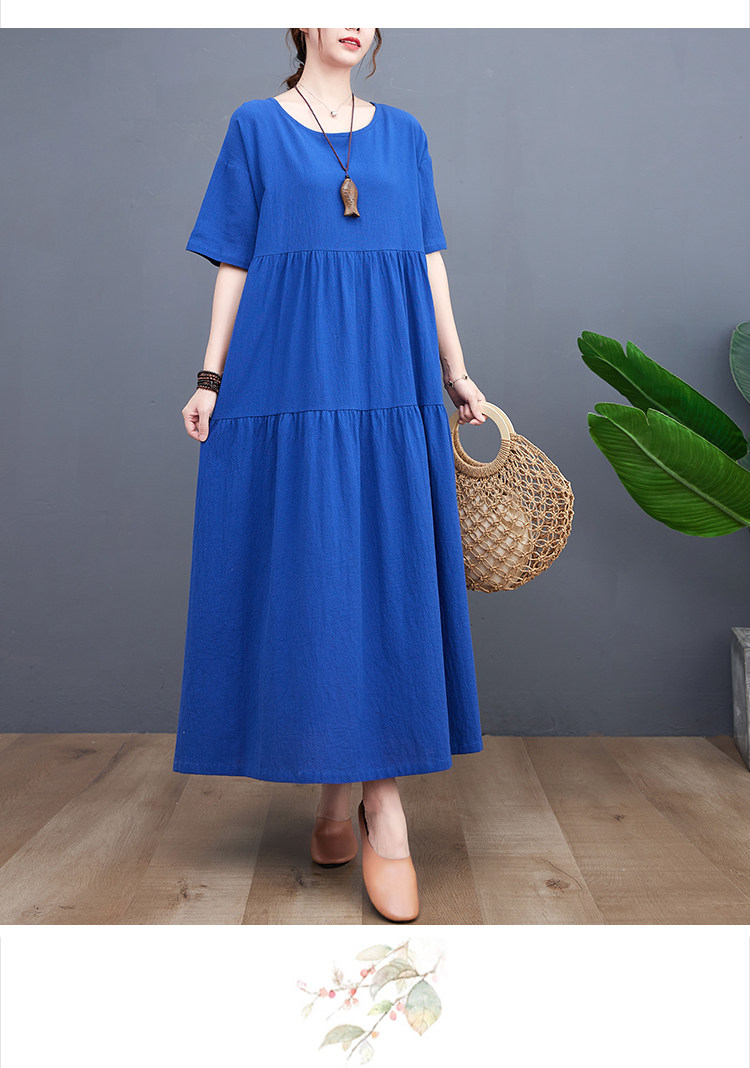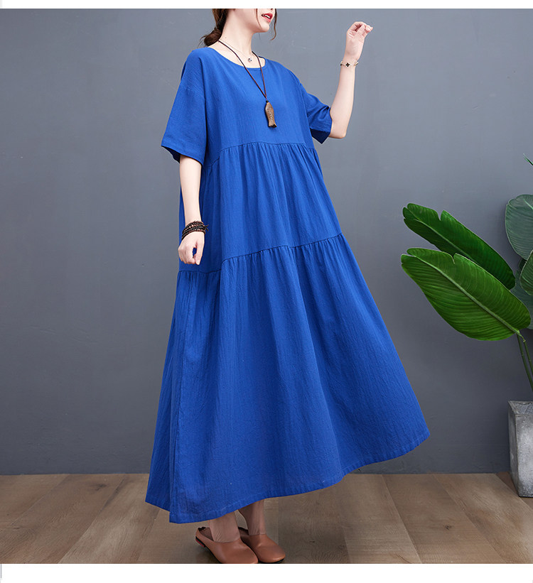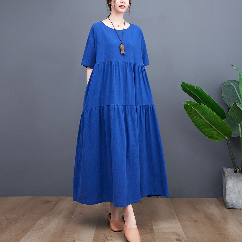 Цветное тонкое платье с коротким рукавом с круглым воротником, большой размер, свободный крой