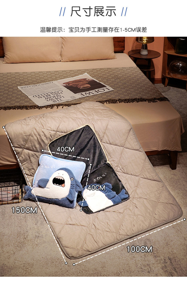 - Держать акулу [Кристаллическая бархатная длинная плюшевая+серая вода стеганых одеял]