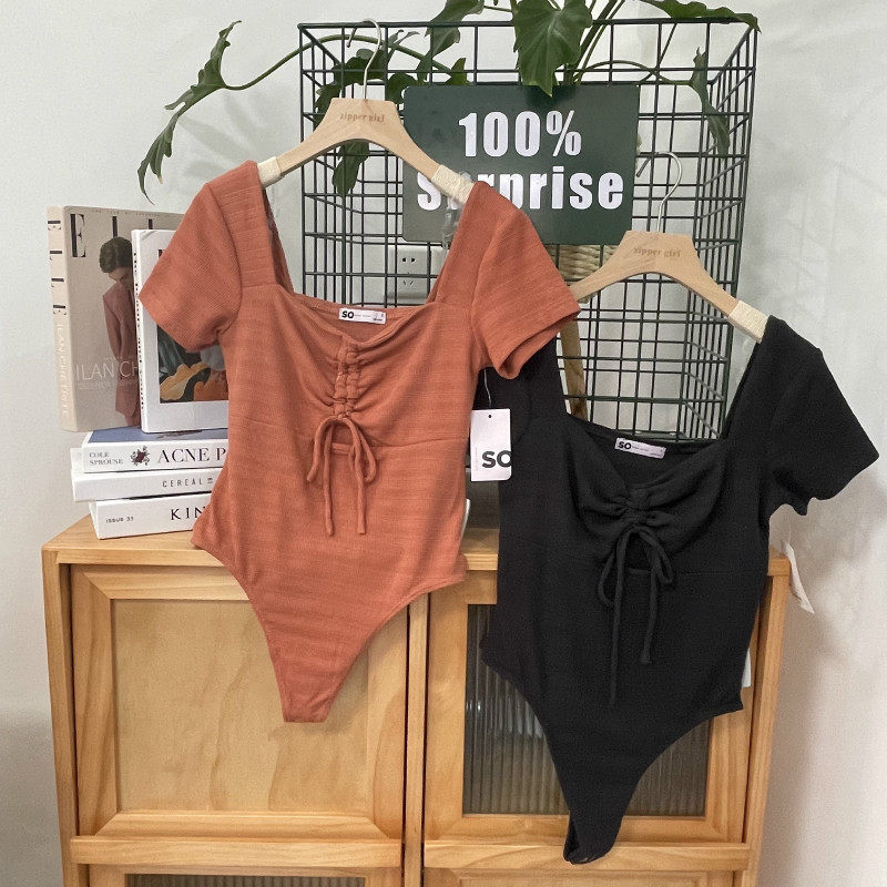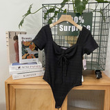 Сексуальный комплект, квадратный вырез, на шнурках, короткий рукав