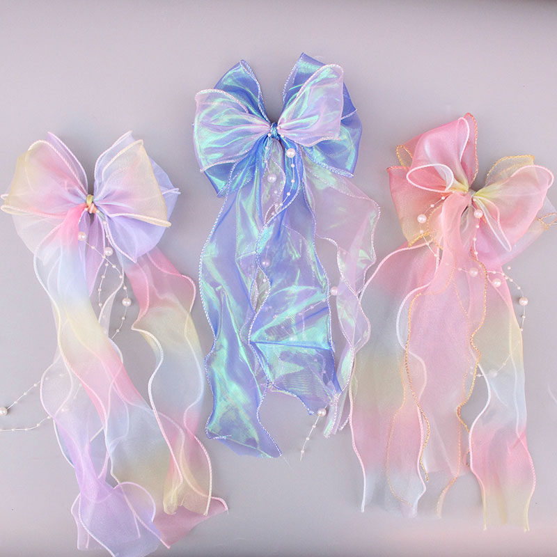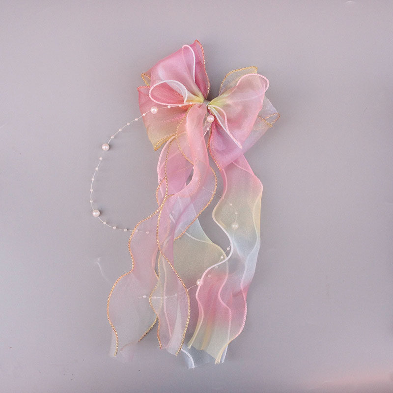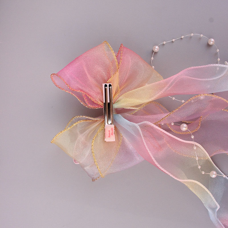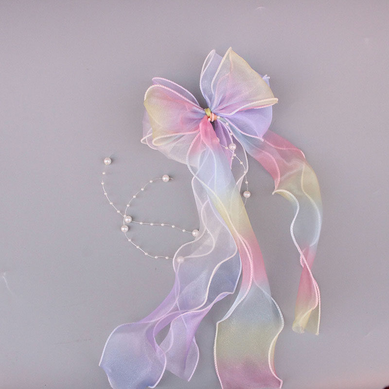 Детская милая японская радужная заколка для волос из жемчуга, градиент