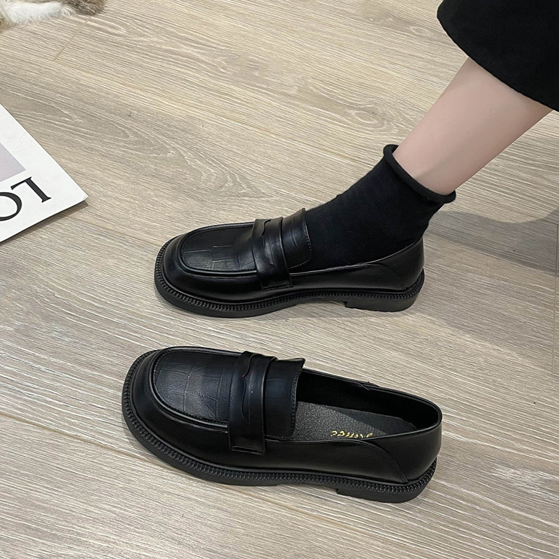 Флисовая обувь для кожаной обуви в английском стиле, весенние универсальные лоферы, черная униформа медсестры, в британском стиле, тренд сезона