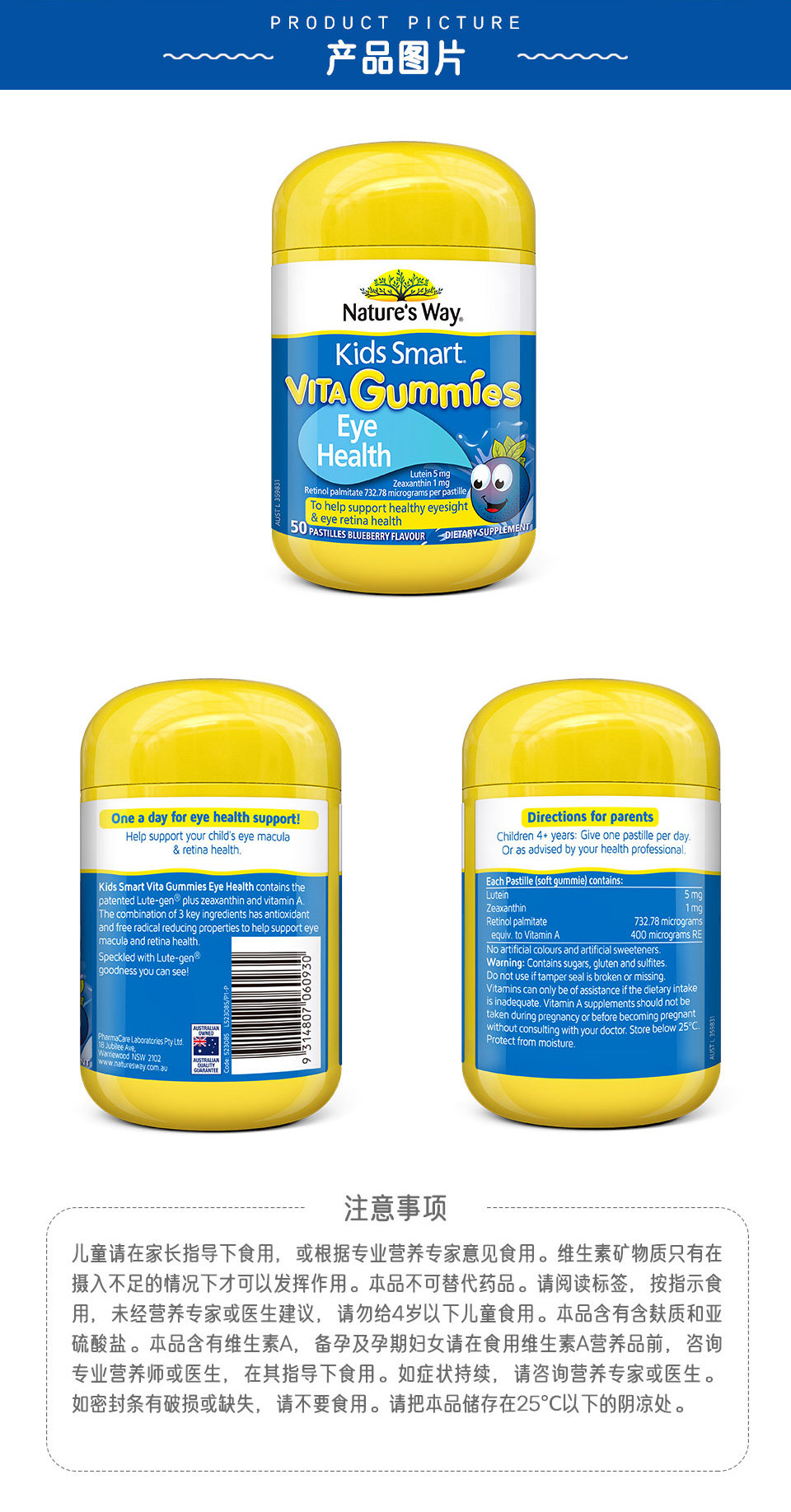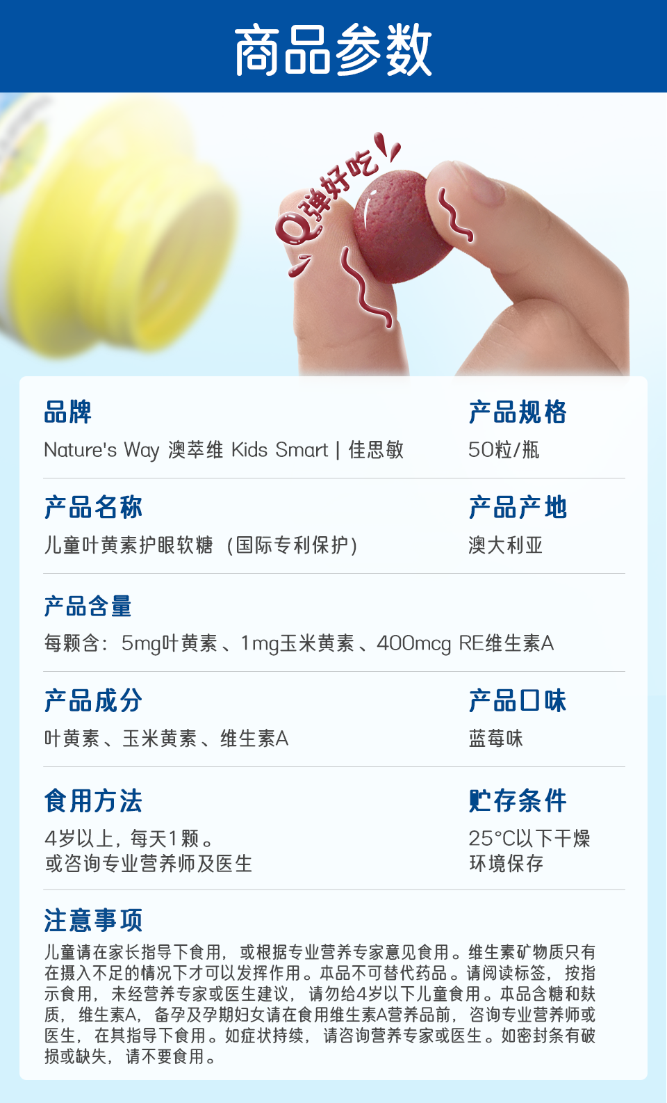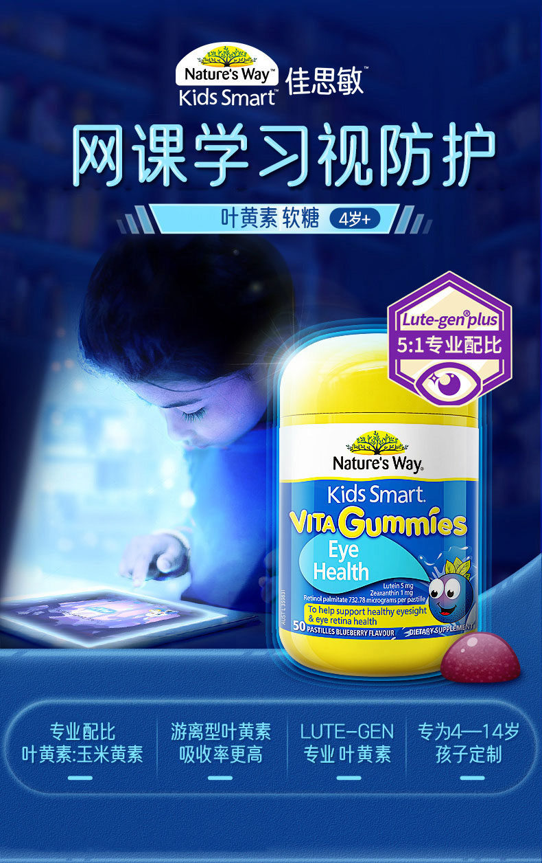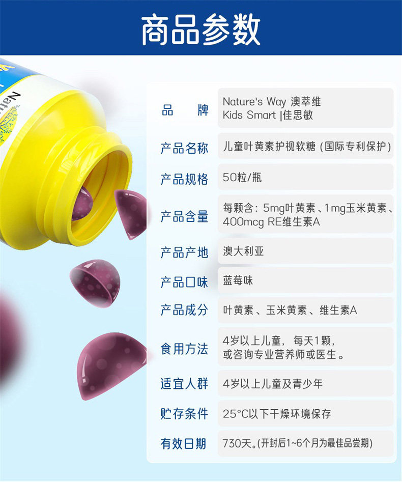 Австралия Naturesway Jiansin Blueberry Leaf Copycin Copycin Детская сеть патента Защита фонд визуальных фондов 50 проса*3