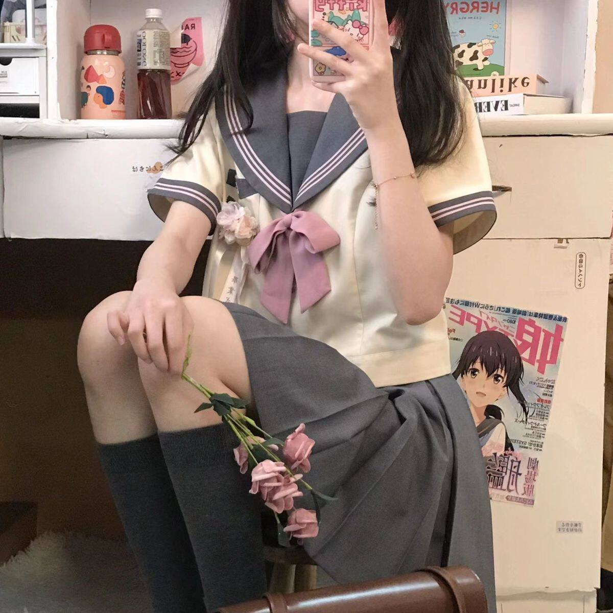 Летняя японская военно-морская галстук-бабочка для школьников и студентов, брендовая юбка, большой размер, свободный крой, короткий рукав