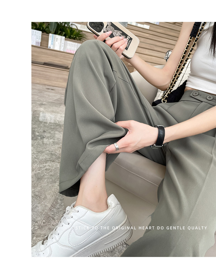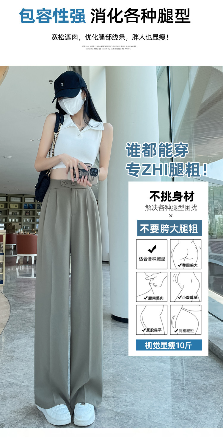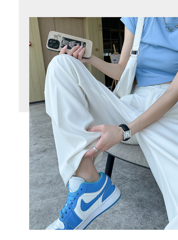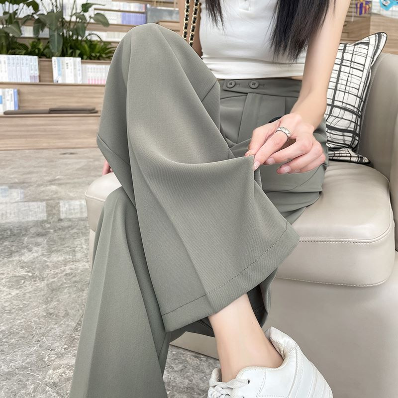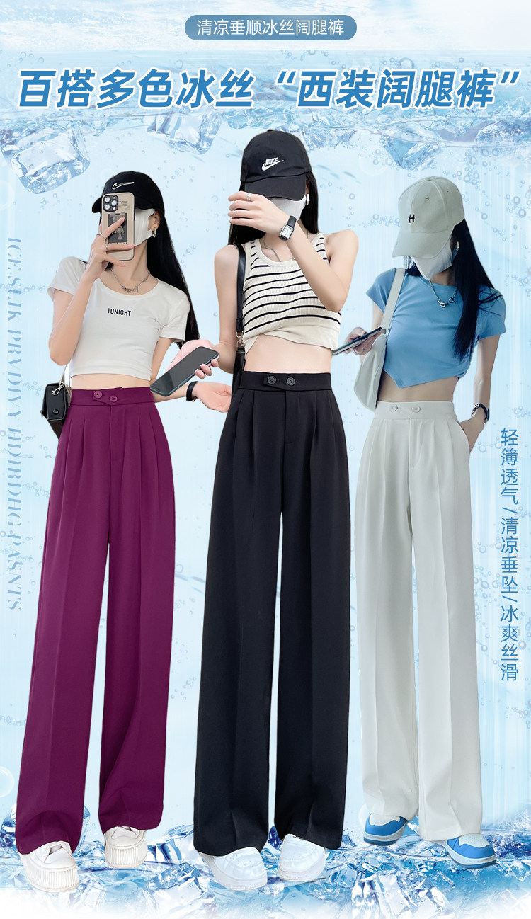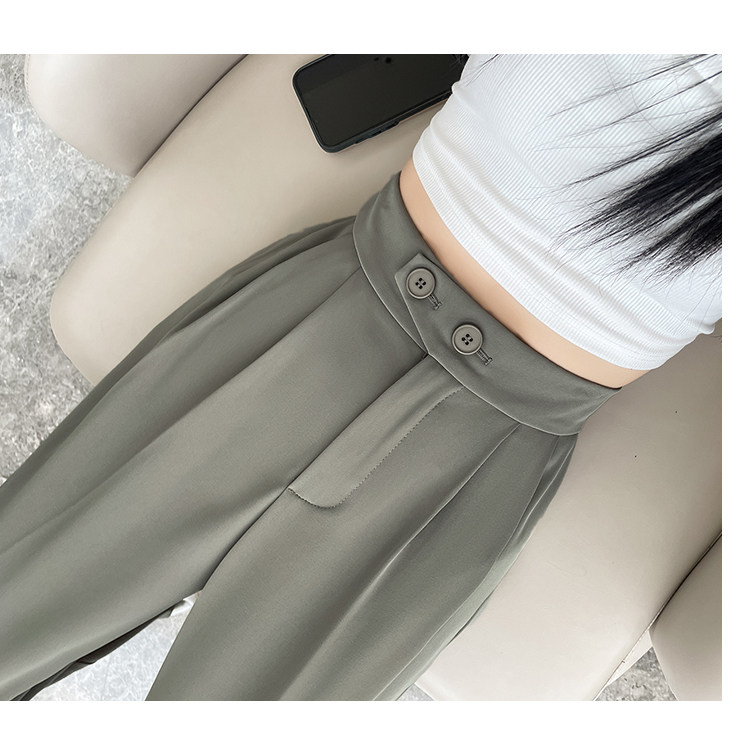 Песочный шелковый костюм, тонкие штаны, высокая талия, подходит для подростков, свободный прямой крой
