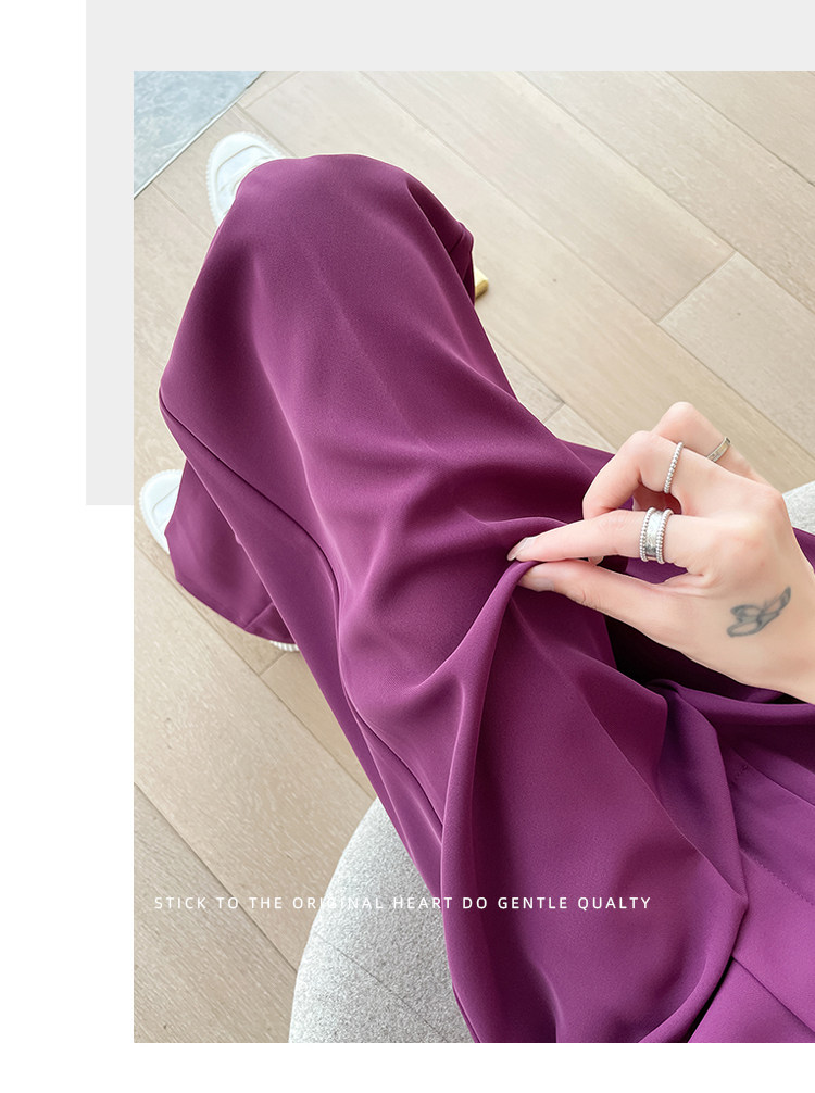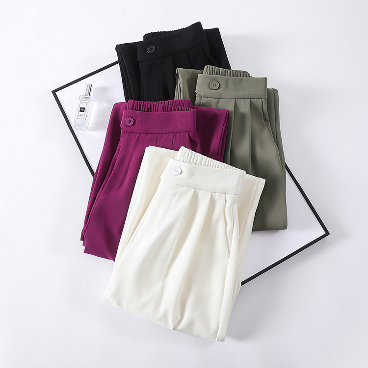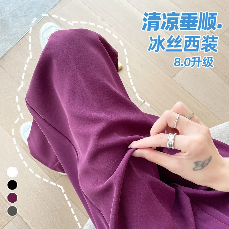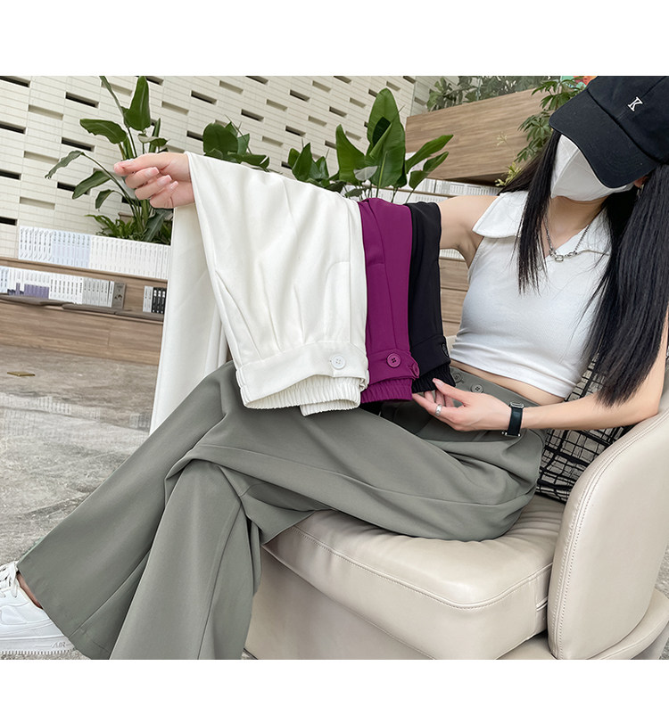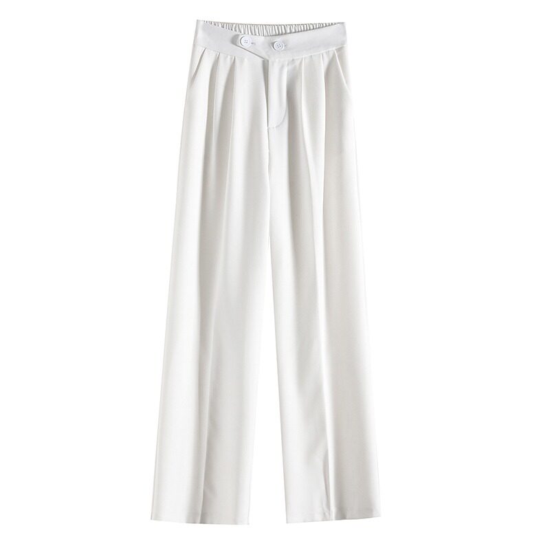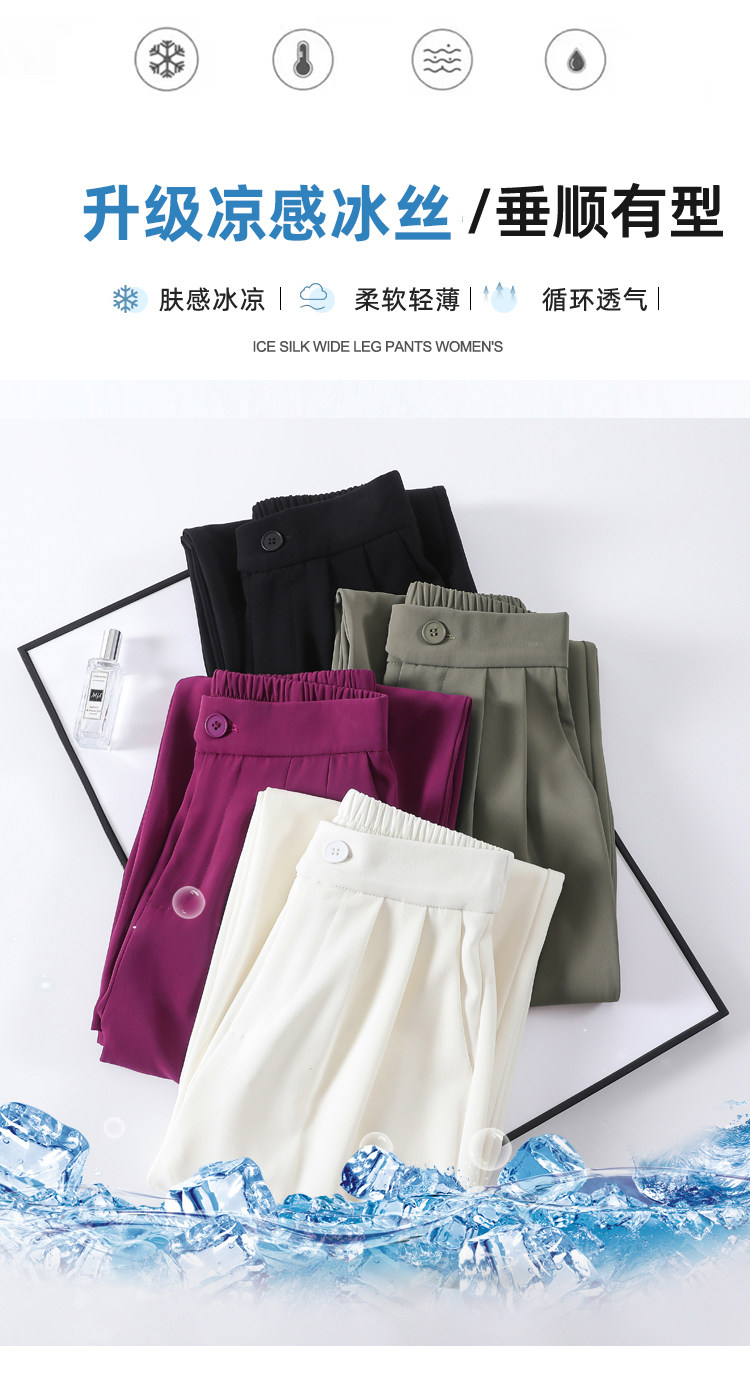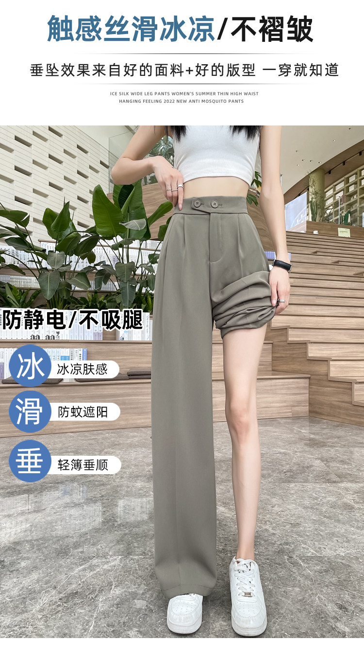 Песочный шелковый костюм, тонкие штаны, высокая талия, подходит для подростков, свободный прямой крой