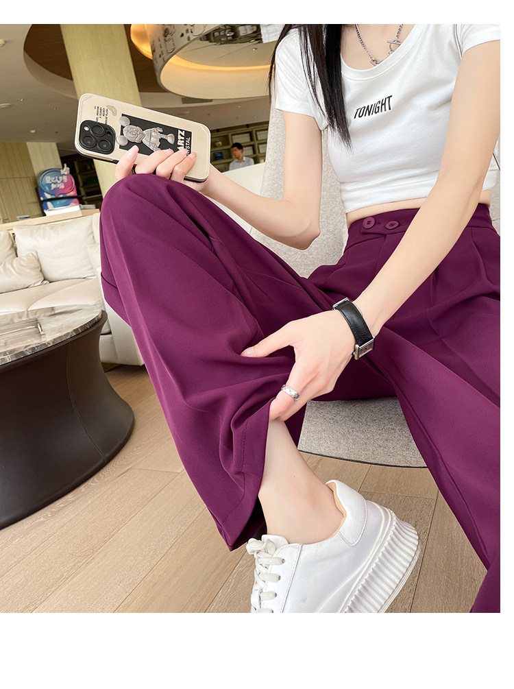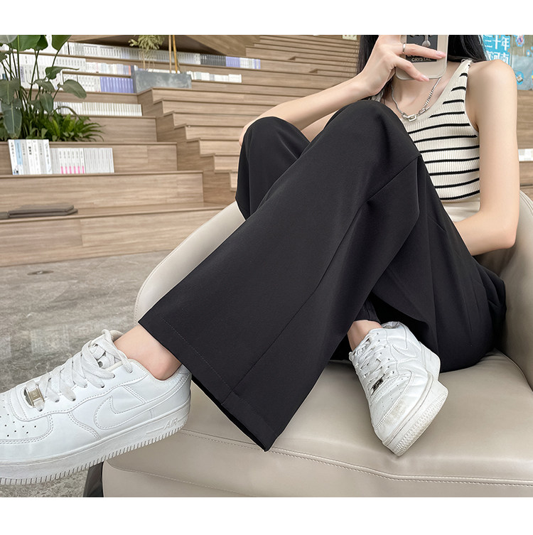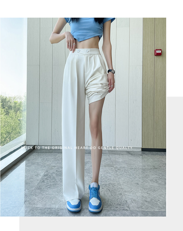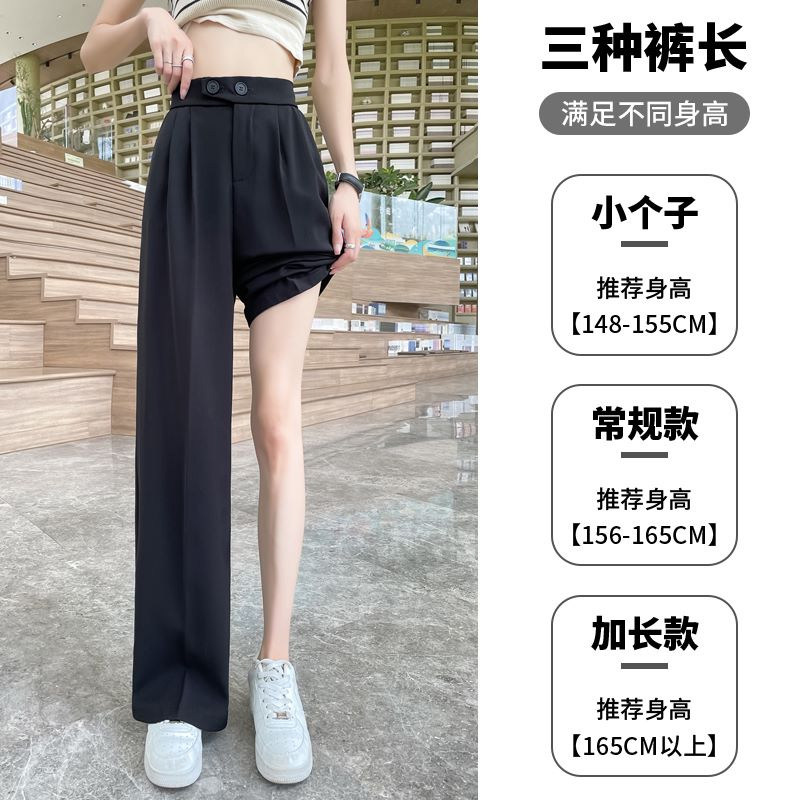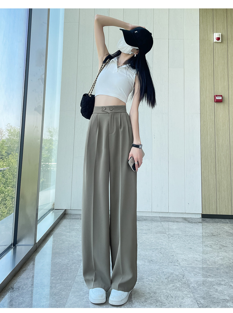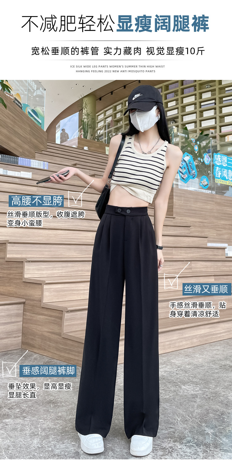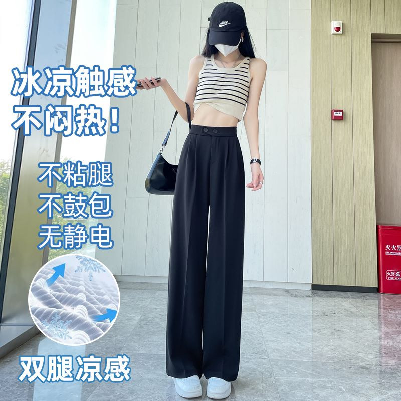 Песочный шелковый костюм, тонкие штаны, высокая талия, подходит для подростков, свободный прямой крой
