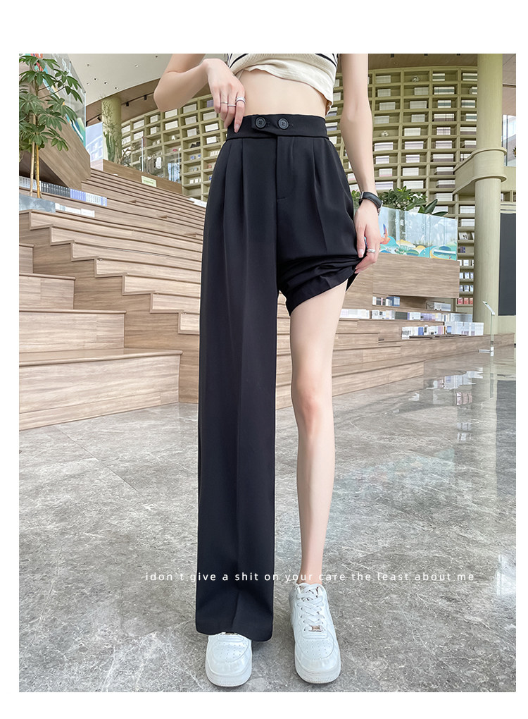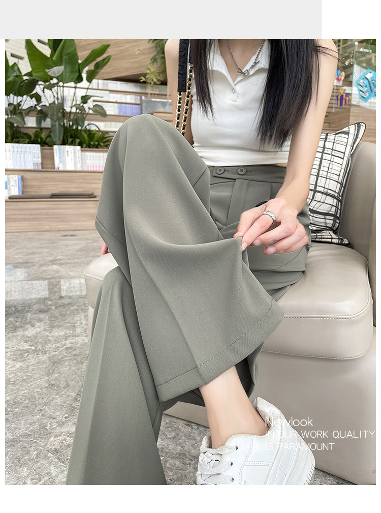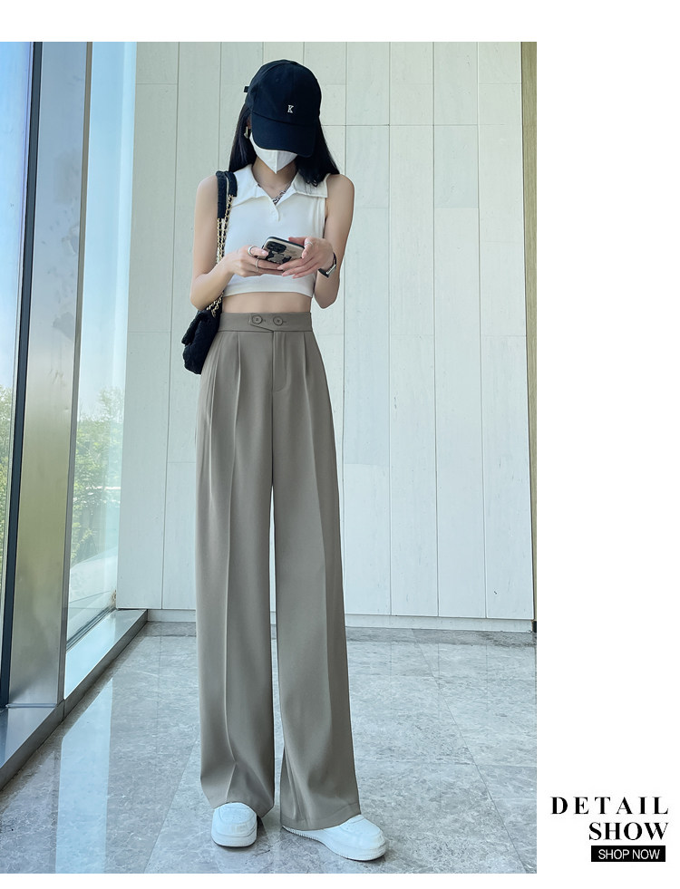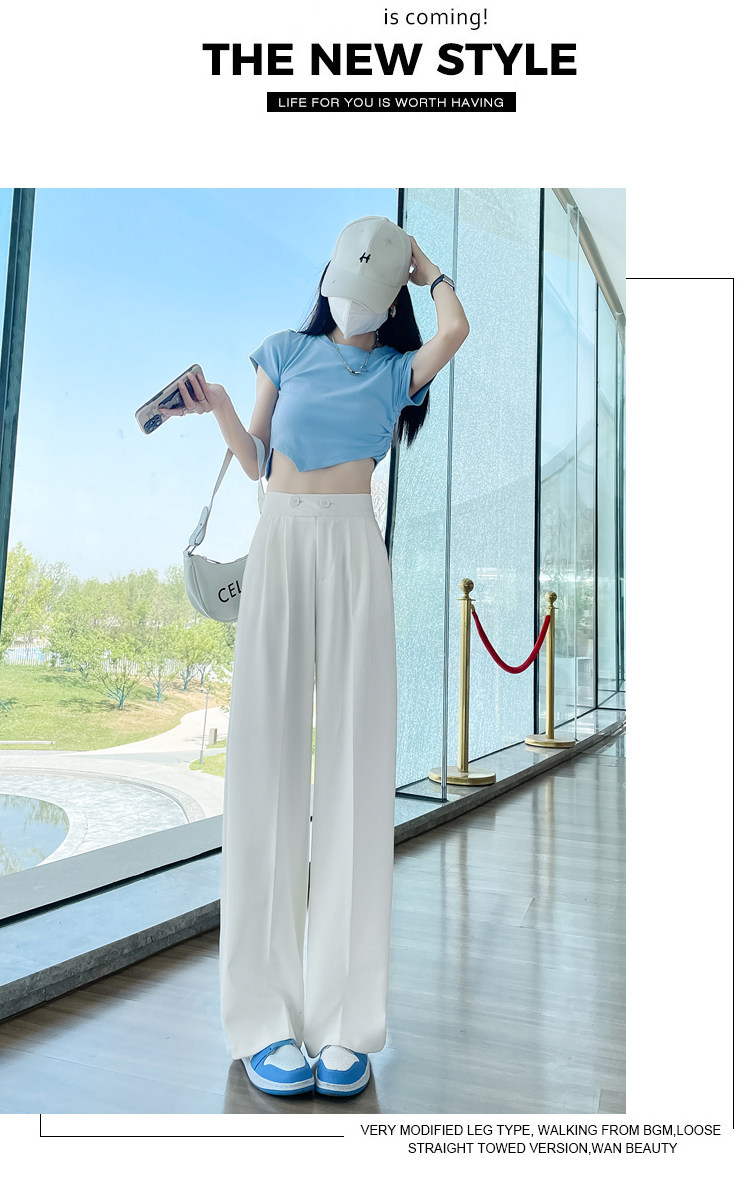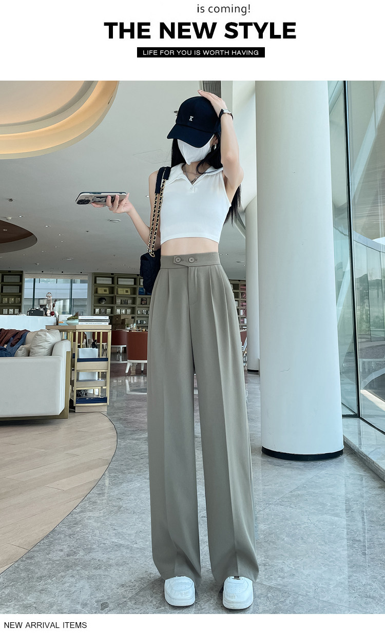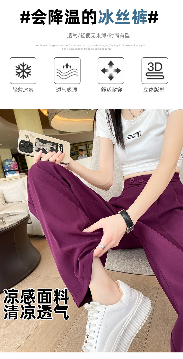 Песочный шелковый костюм, тонкие штаны, высокая талия, подходит для подростков, свободный прямой крой