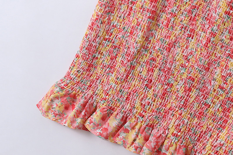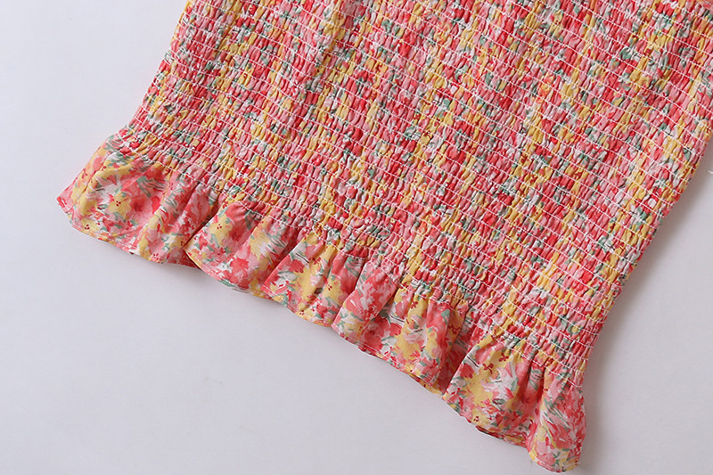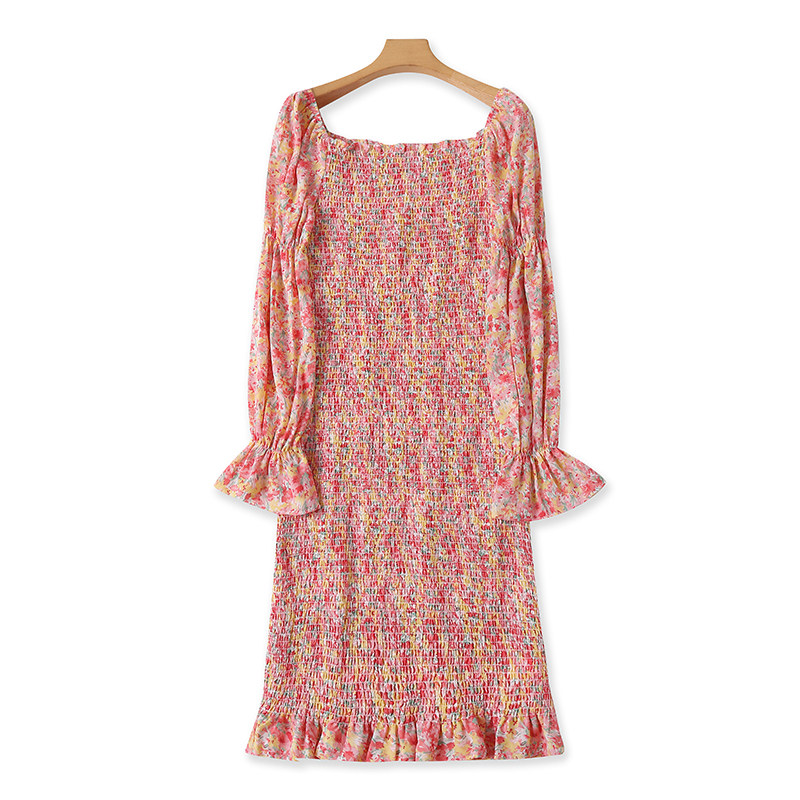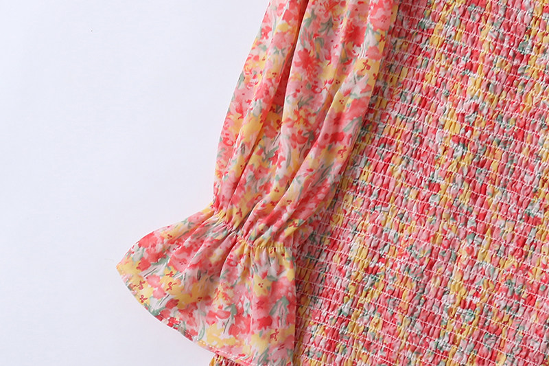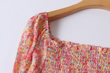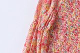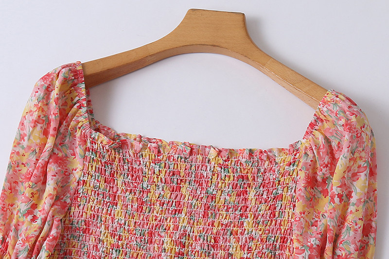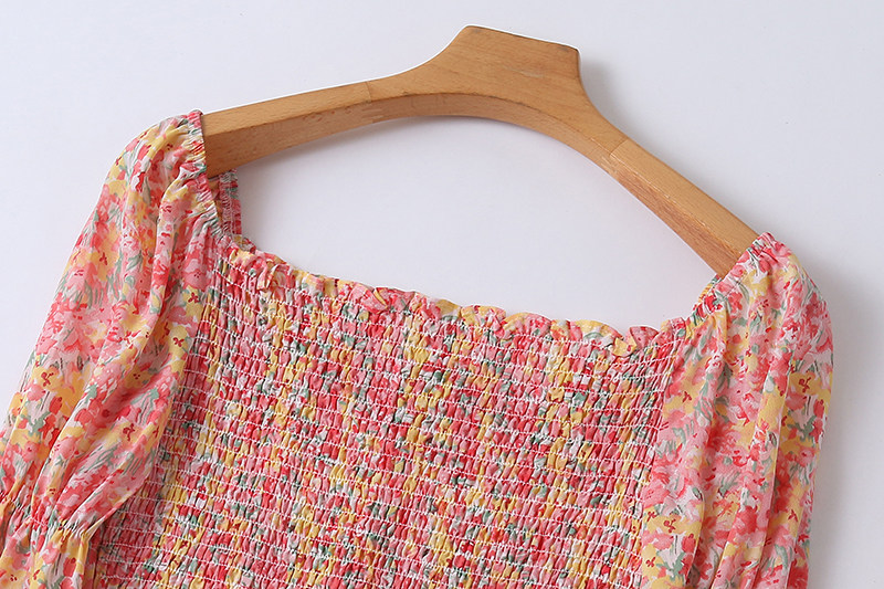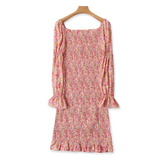 Шифоновое летнее платье, мегафон, длинная юбка, цветочный принт, французский стиль, квадратный вырез, с рукавом, средней длины