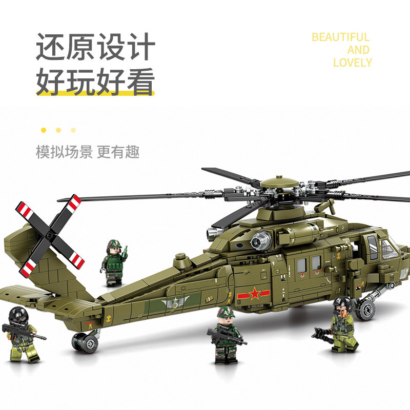 Senbao Jiying Aviation Cultural Cultural и создайте подлинные уполномоченные притворяющиеся загадки -строительные блоки -20 вооруженного вертолета 202152