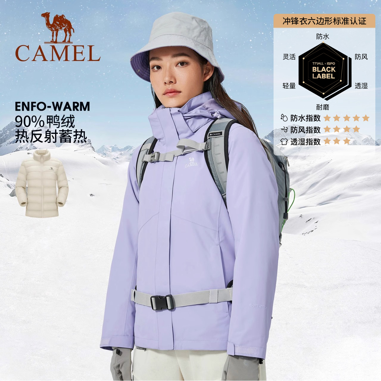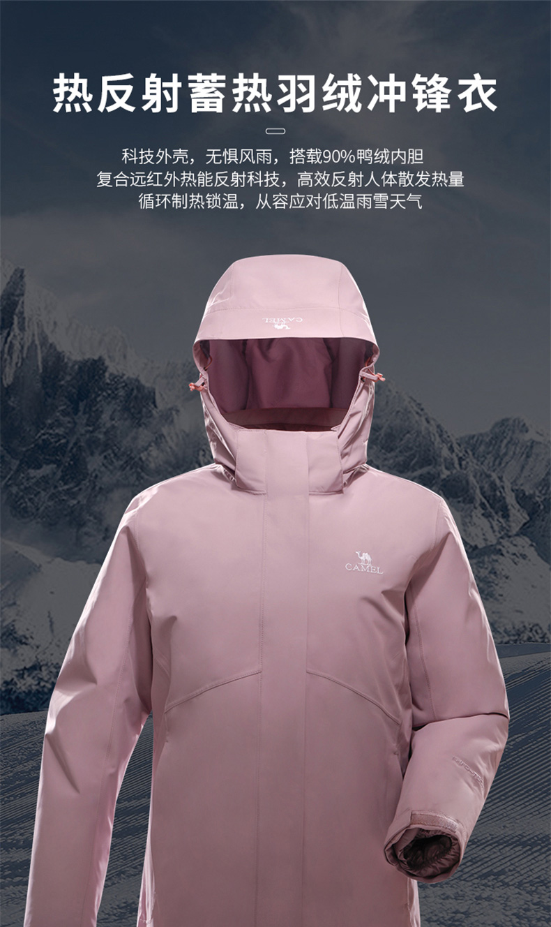 Дорожная куртка с пухом подходит для мужчин и женщин, ветрозащитный водонепроницаемый лыжный пуховик, лыжный костюм, комплект, «три в одном»