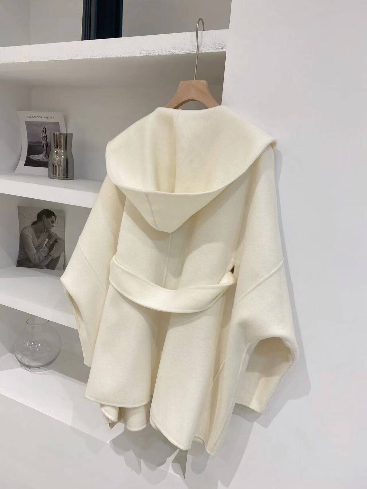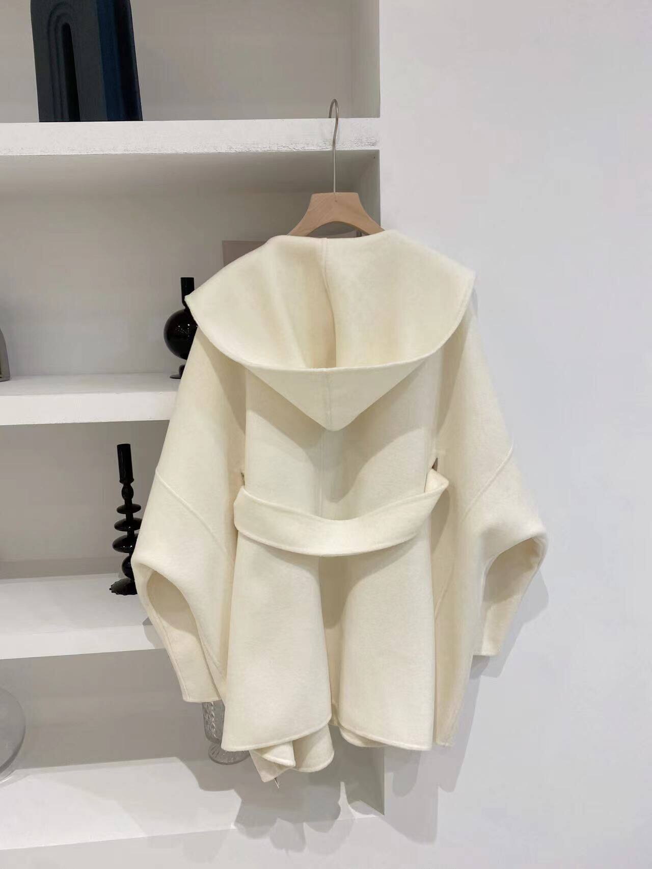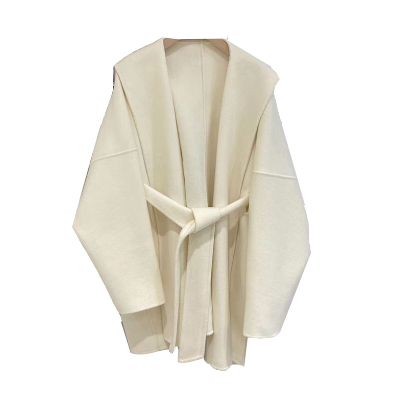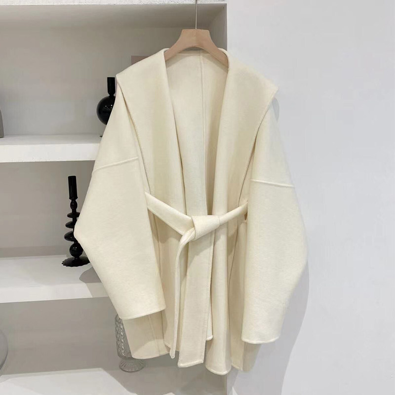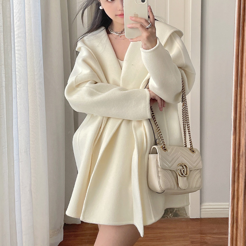 Белый плащ с капюшоном, шерстяное шерстяное пальто, короткая двусторонная куртка, свободный крой, подходит для подростков