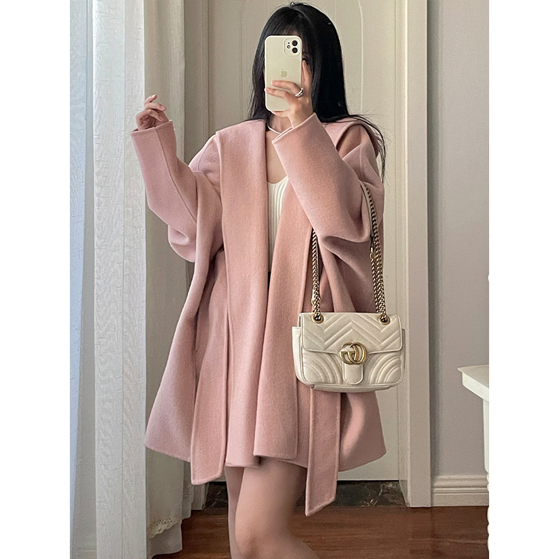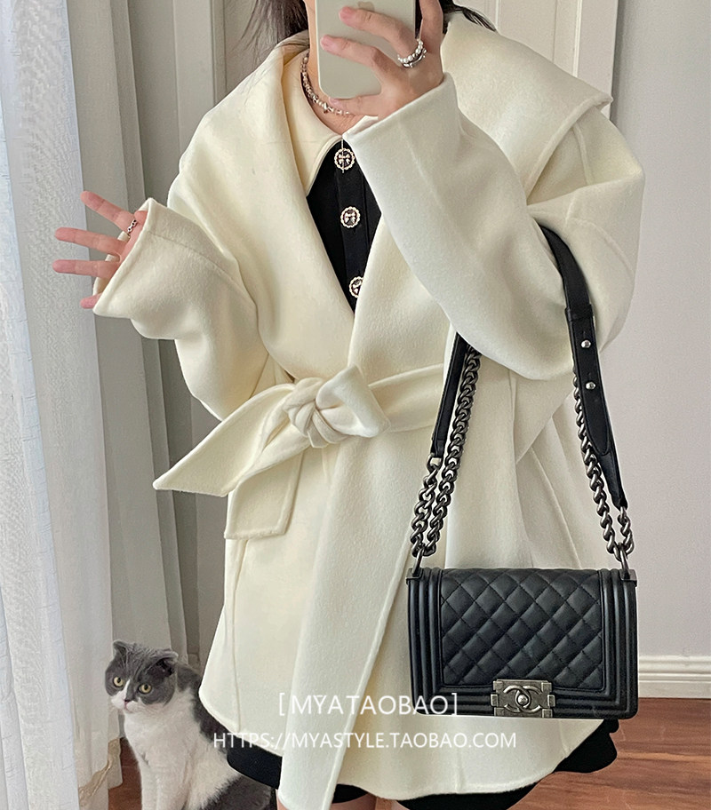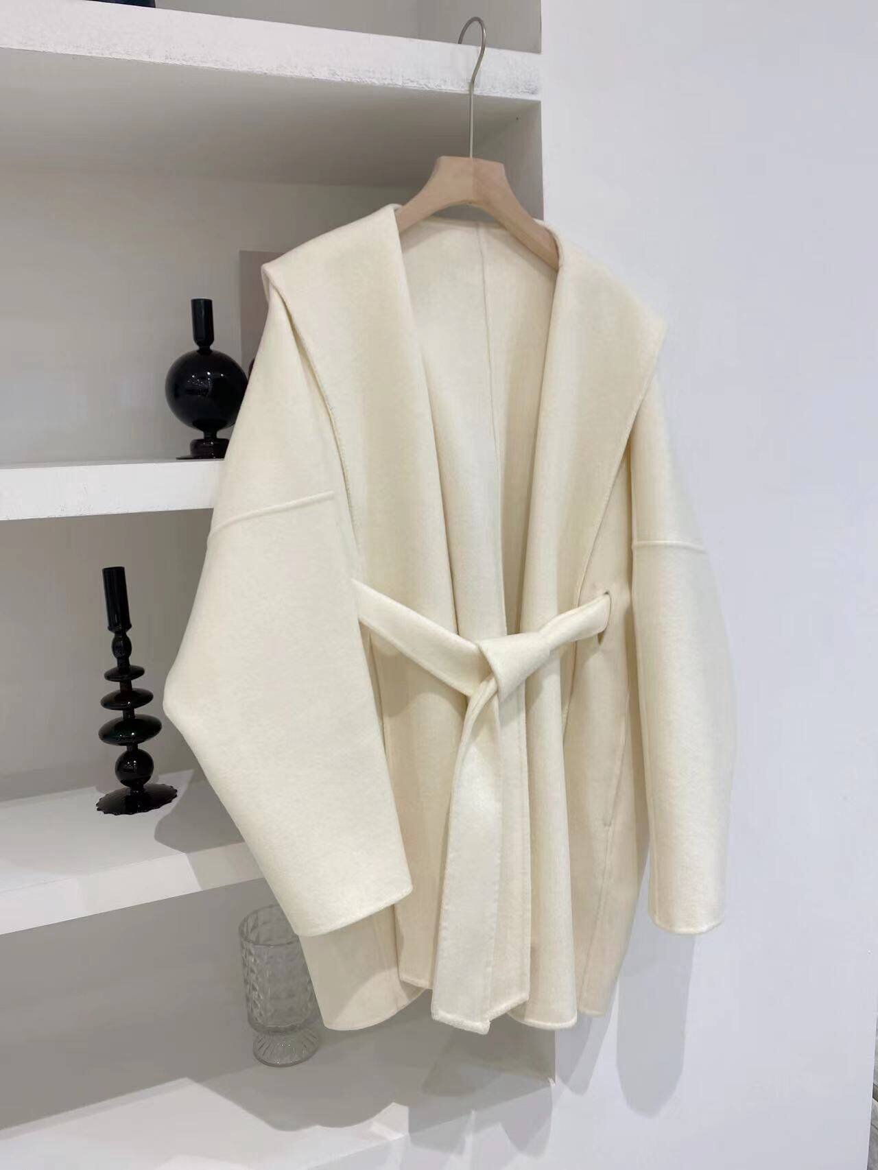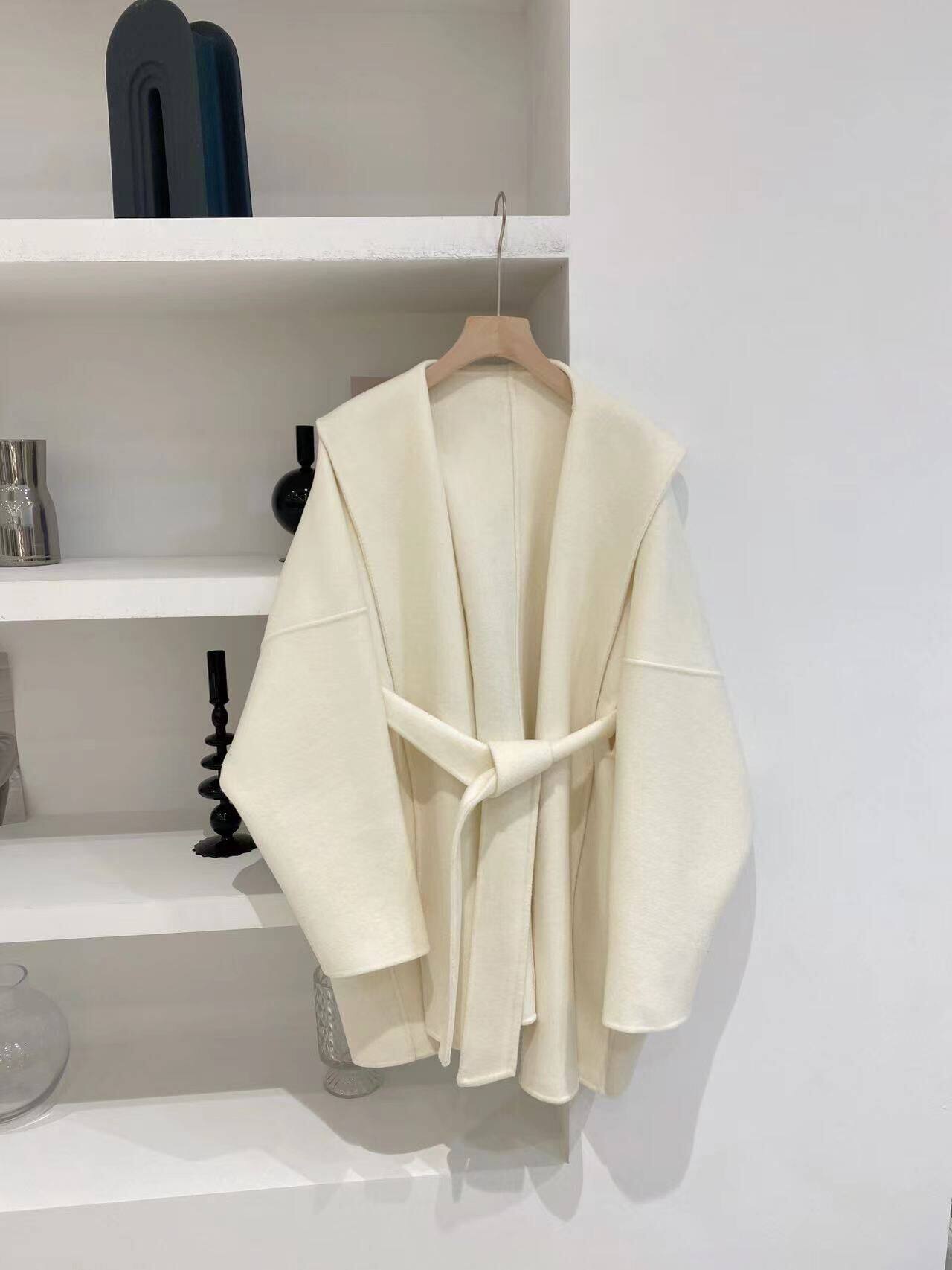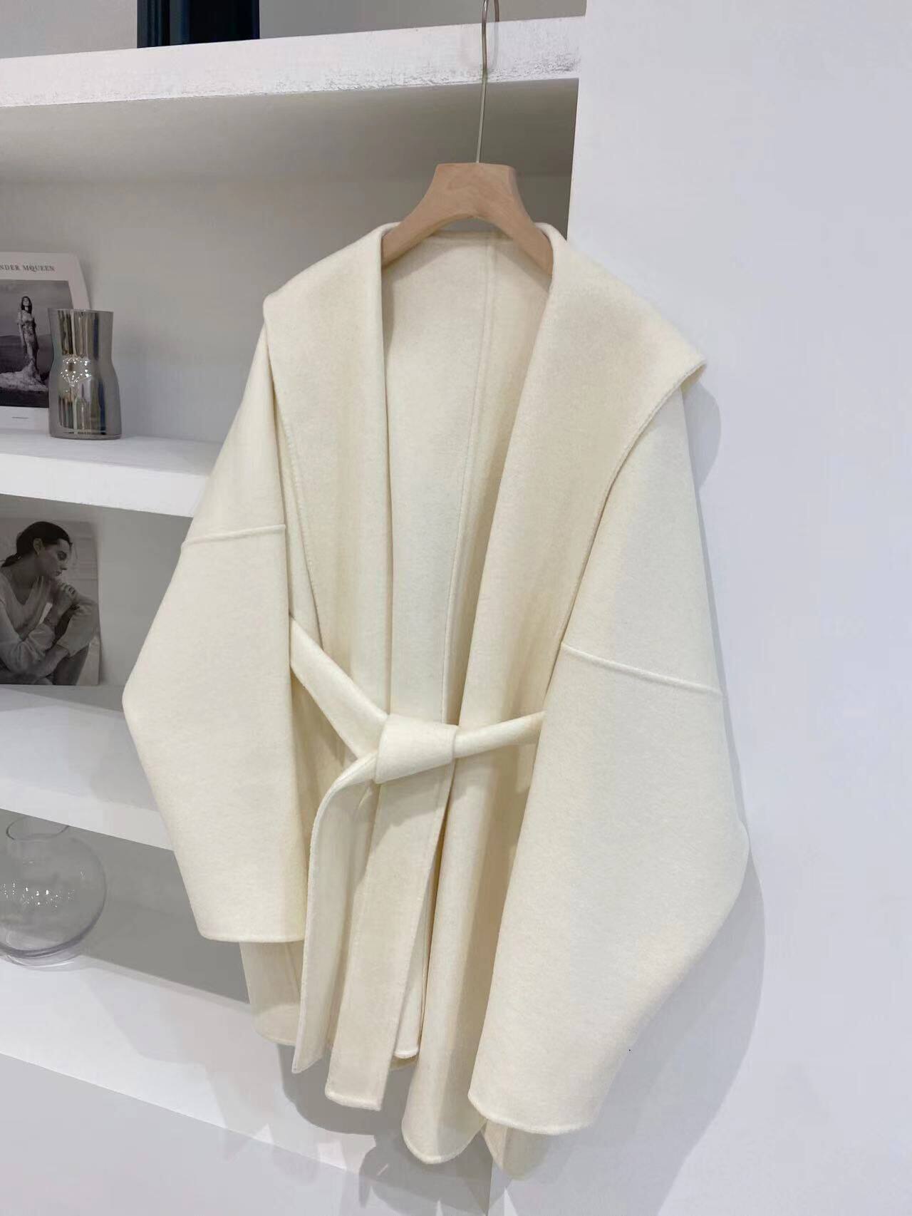 Белый плащ с капюшоном, шерстяное шерстяное пальто, короткая двусторонная куртка, свободный крой, подходит для подростков