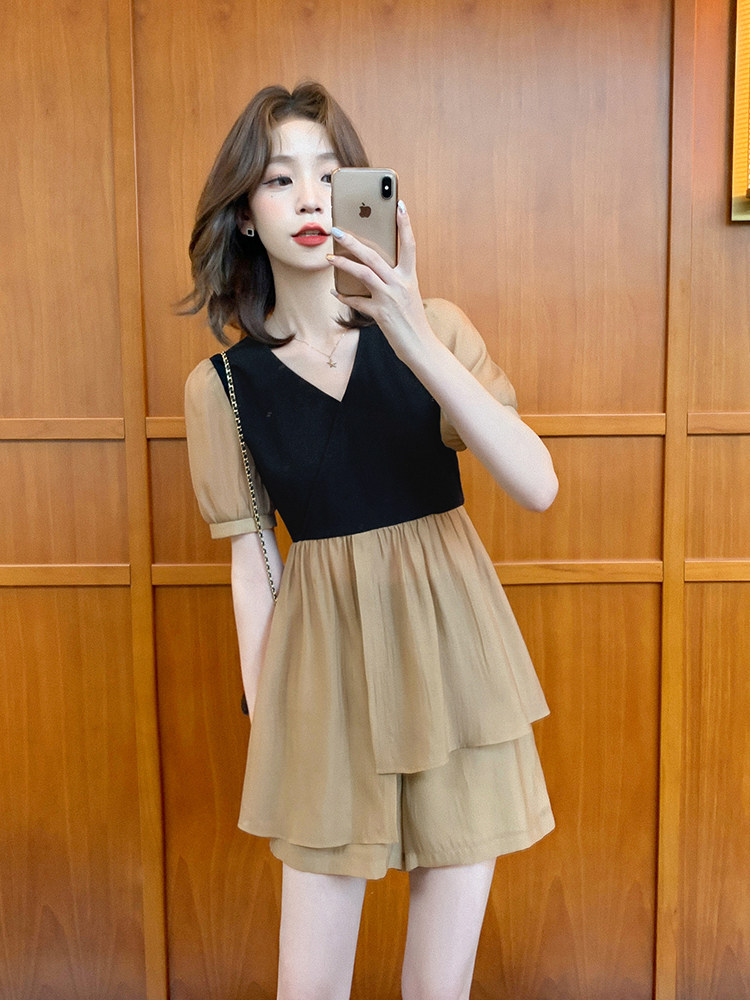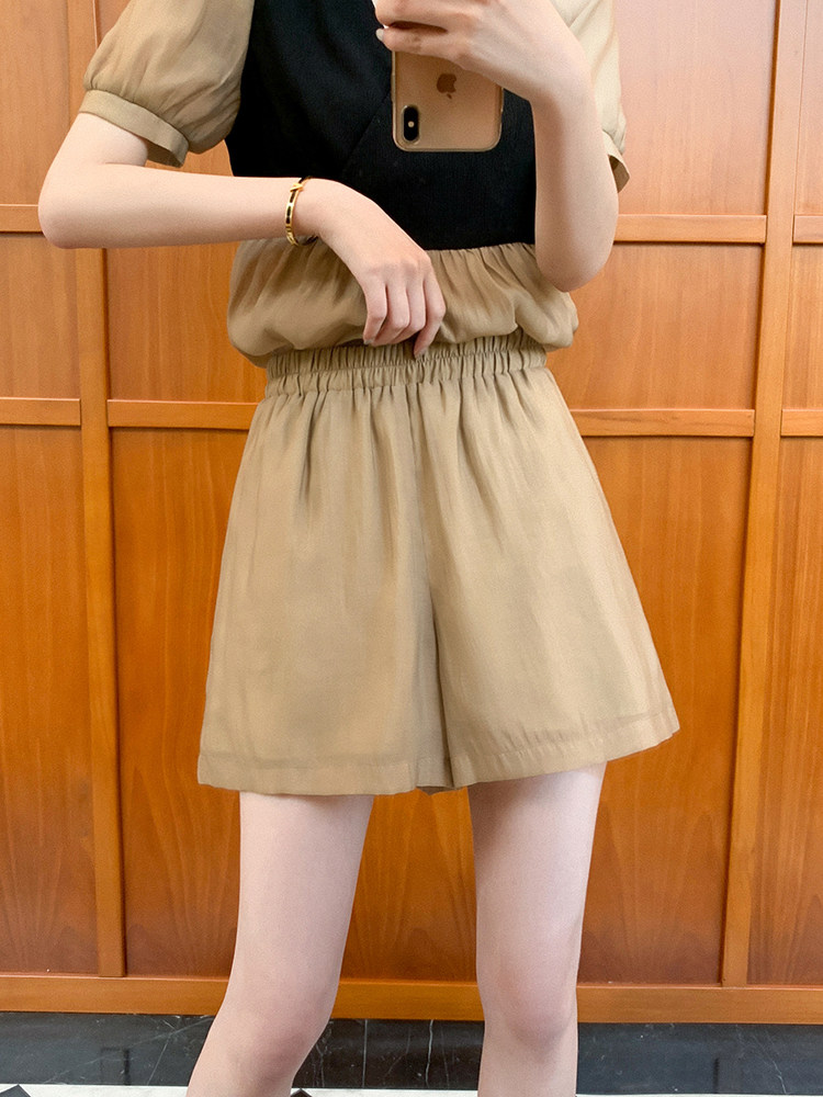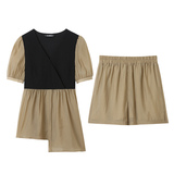 小谷粒 Летний комплект, V-образный вырез, рукава фонарики, высокая талия