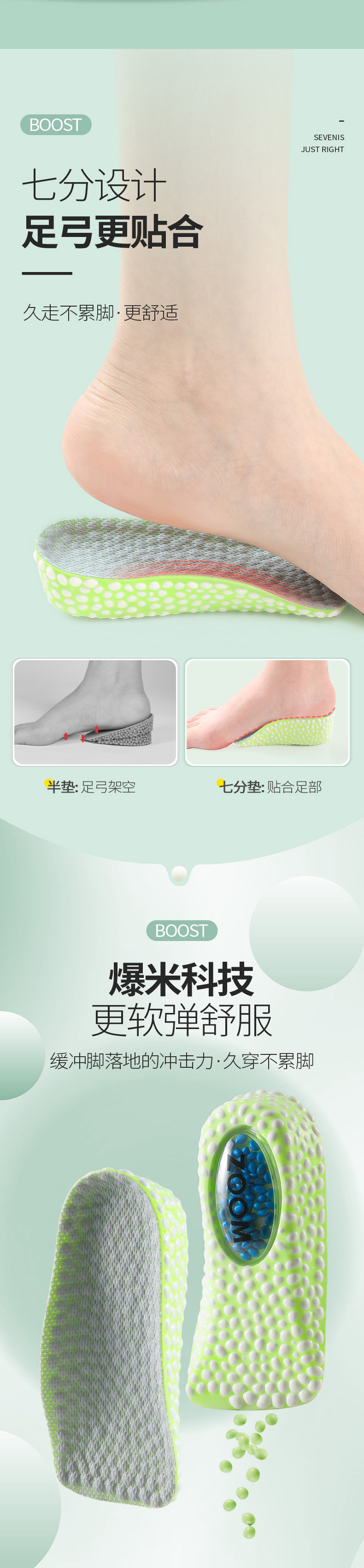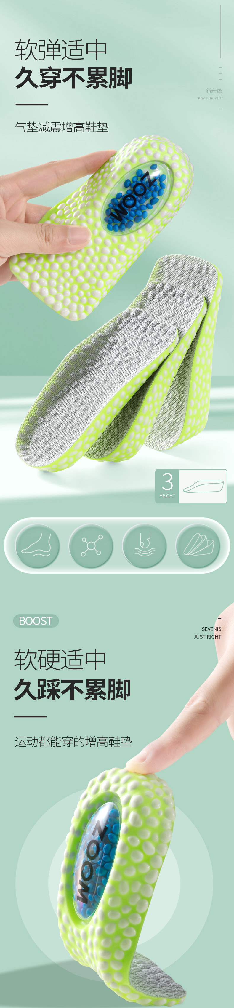 Boost, air jordan, кушон, мужские стельки для увеличения роста, невидимые летние полустельки