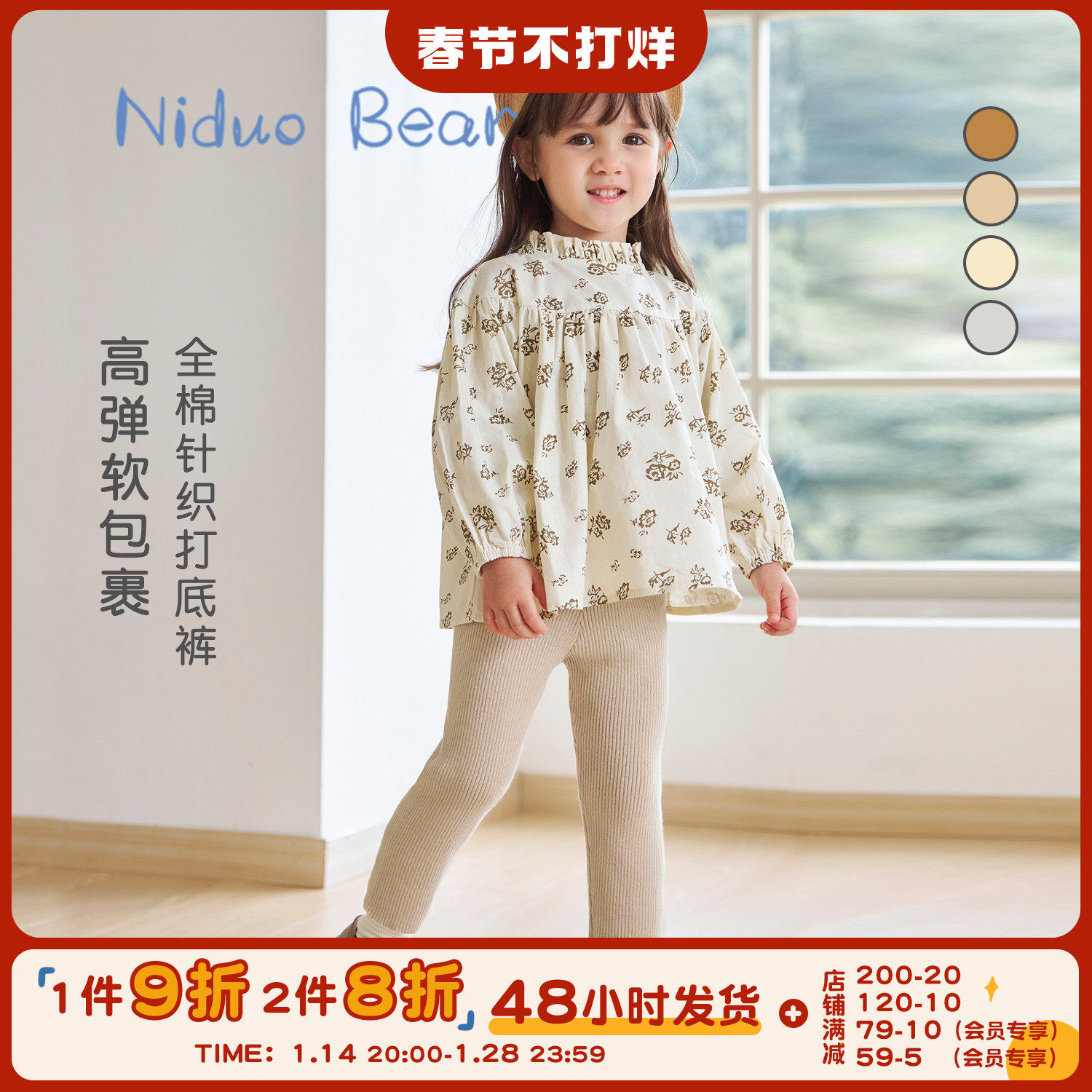 尼多熊 Осенние трикотажные леггинсы, детские штаны, хлопковое детское осеннее термобелье