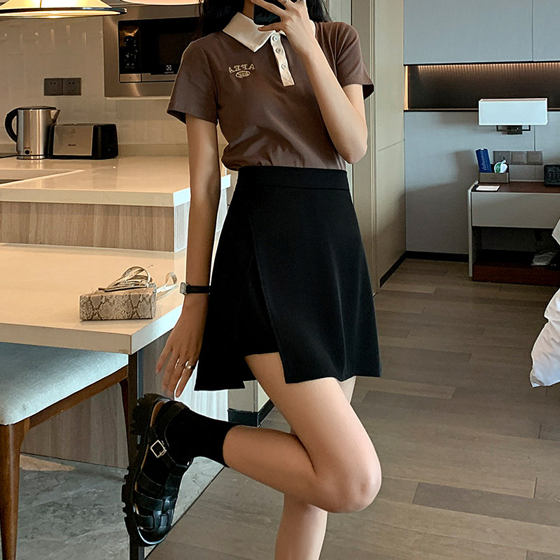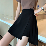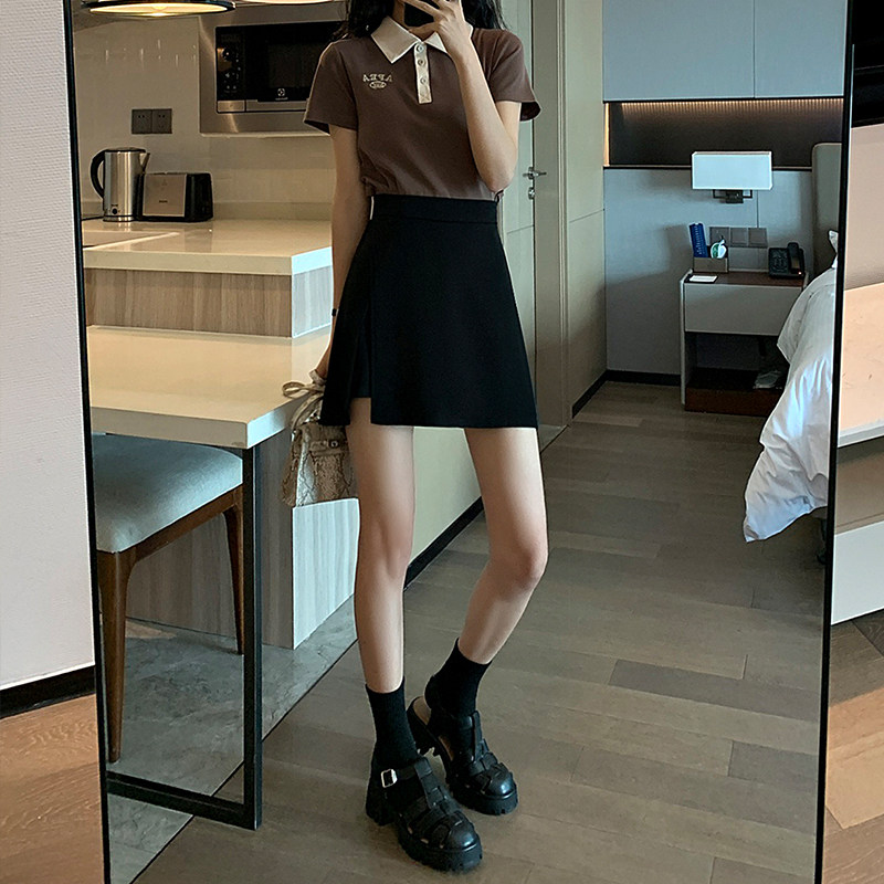 Черная летняя юбка, приталенный костюм, защитное белье, шелковая мини-юбка, высокая талия, А-силуэт, с акцентом на бедрах