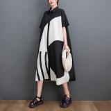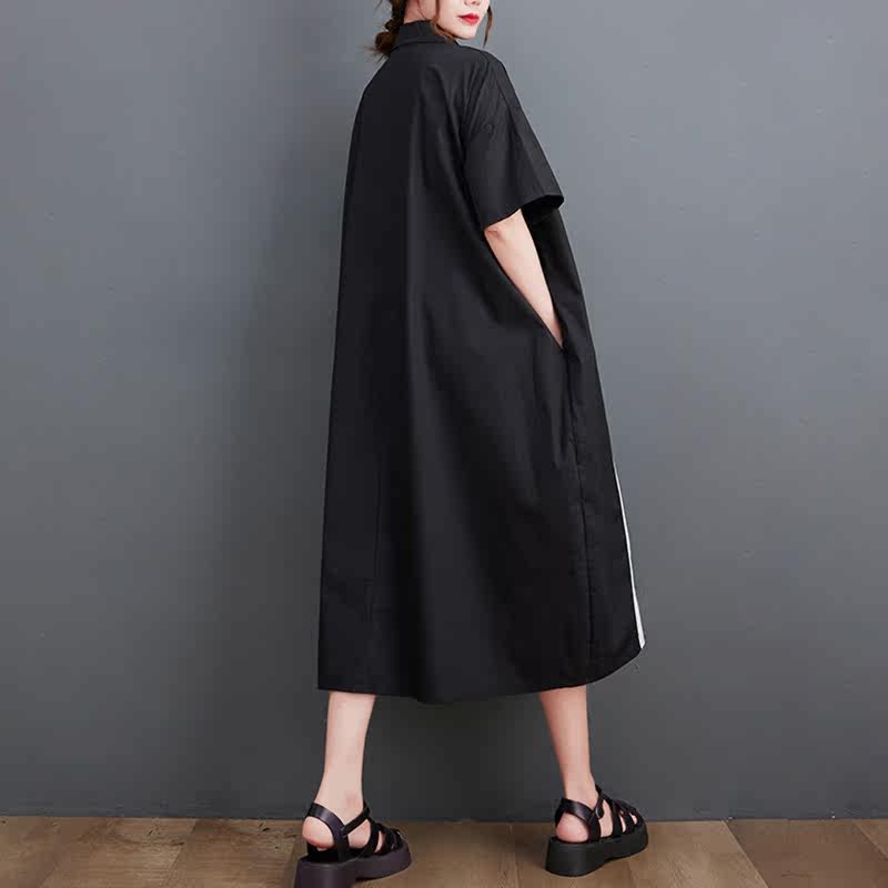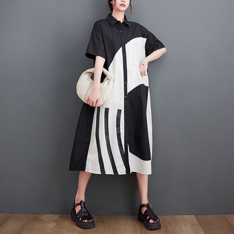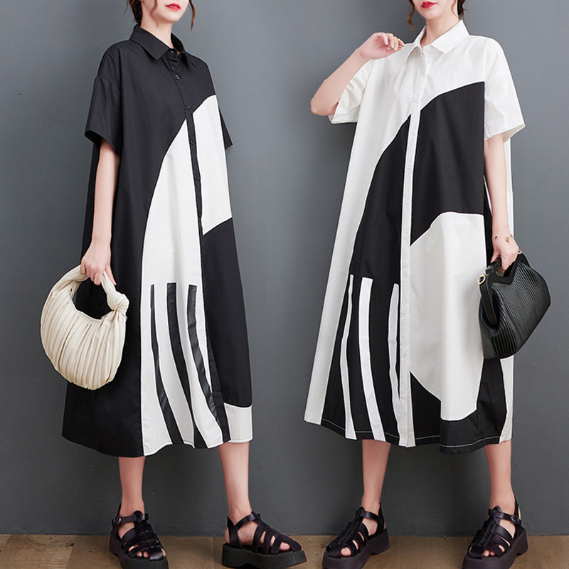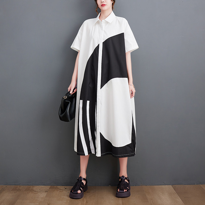 Летний кардиган, платье с коротким рукавом, тонкое платье большого размера, длинная юбка, воротник поло, большой размер, средней длины