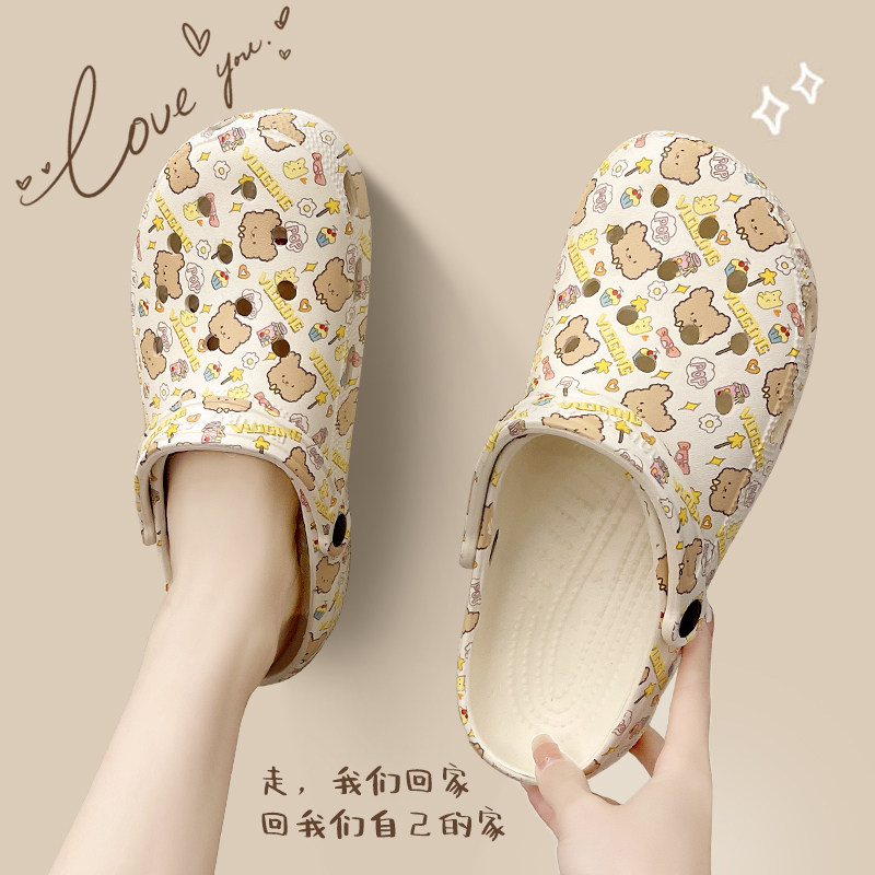 Летние нескользящие милые босоножки, тапочки, с медвежатами, для влюбленных