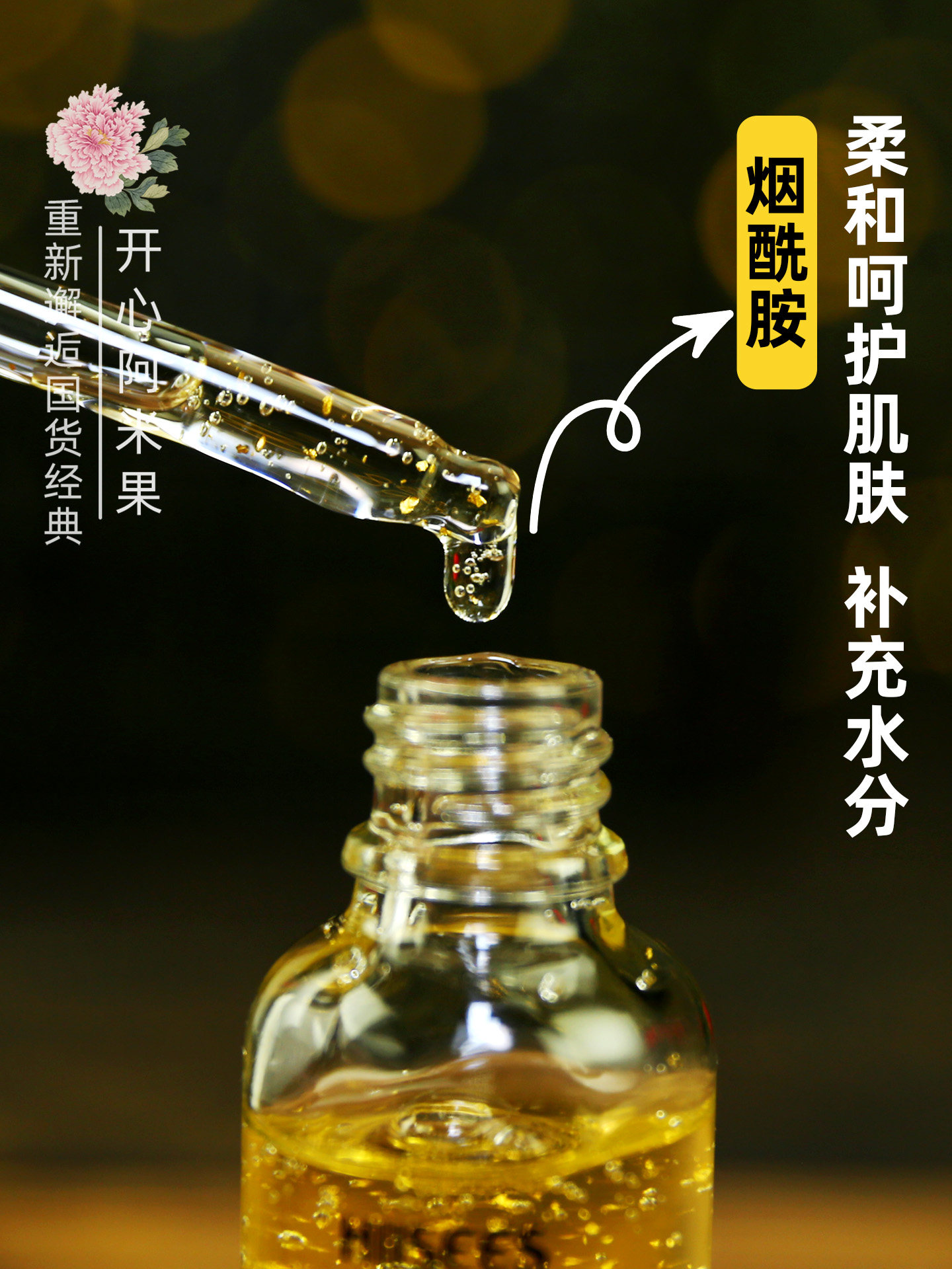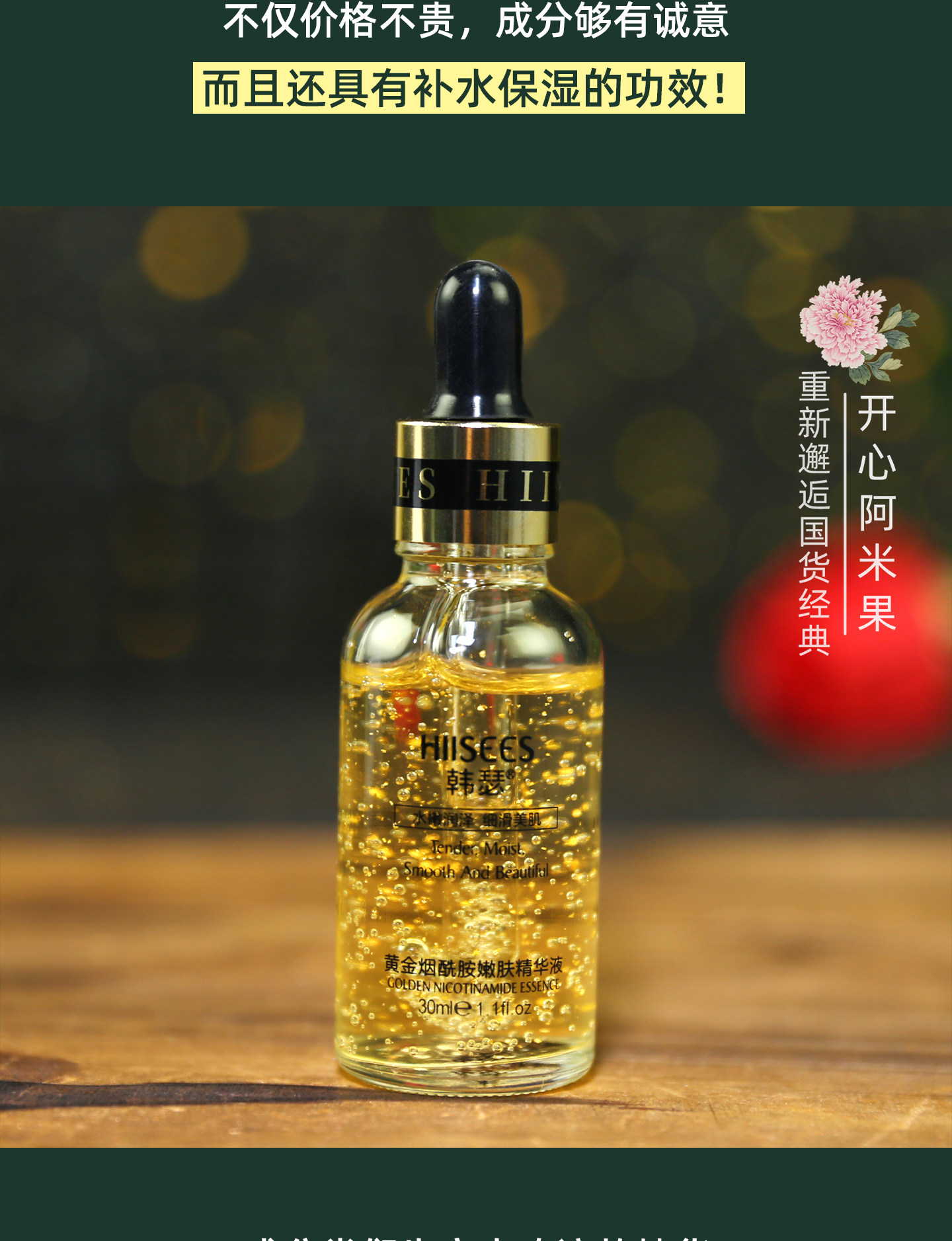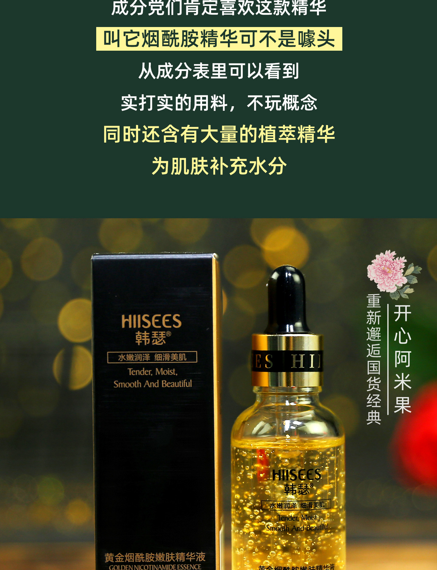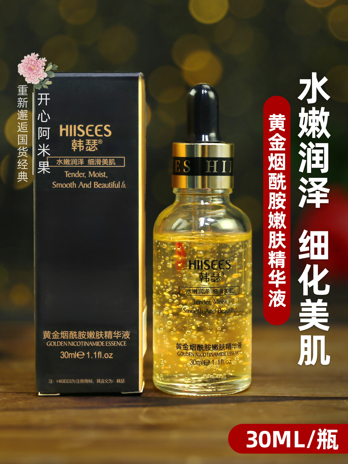 韩瑟 Золотая увлажняющая сыворотка содержит никотиновую кислоту для лица для ухода за кожей, омоложение кожи, 30 мл